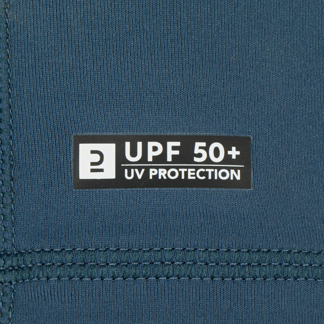 Le textile qui compose ce produit anti-UV OLAIAN permet de bloquer au minimum 98 % des UVB et 95 % des UVA (UPF 50+). C'est la garantie d'une protection efficace contre le soleil. Il peut être utilisé dans et hors de l'eau pour la pratique des sports nautiques et aquatiques. La filtration des UV est générée par la densité des fibres textiles, cette protection dure dans le temps, même après lavage. Attention, l'élastane contenue dans la fibre peut se détériorer dans l'eau chlorée.