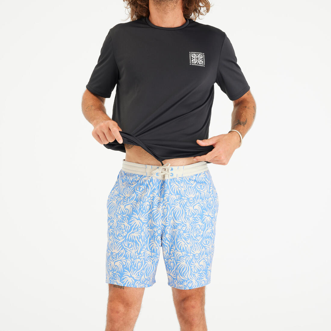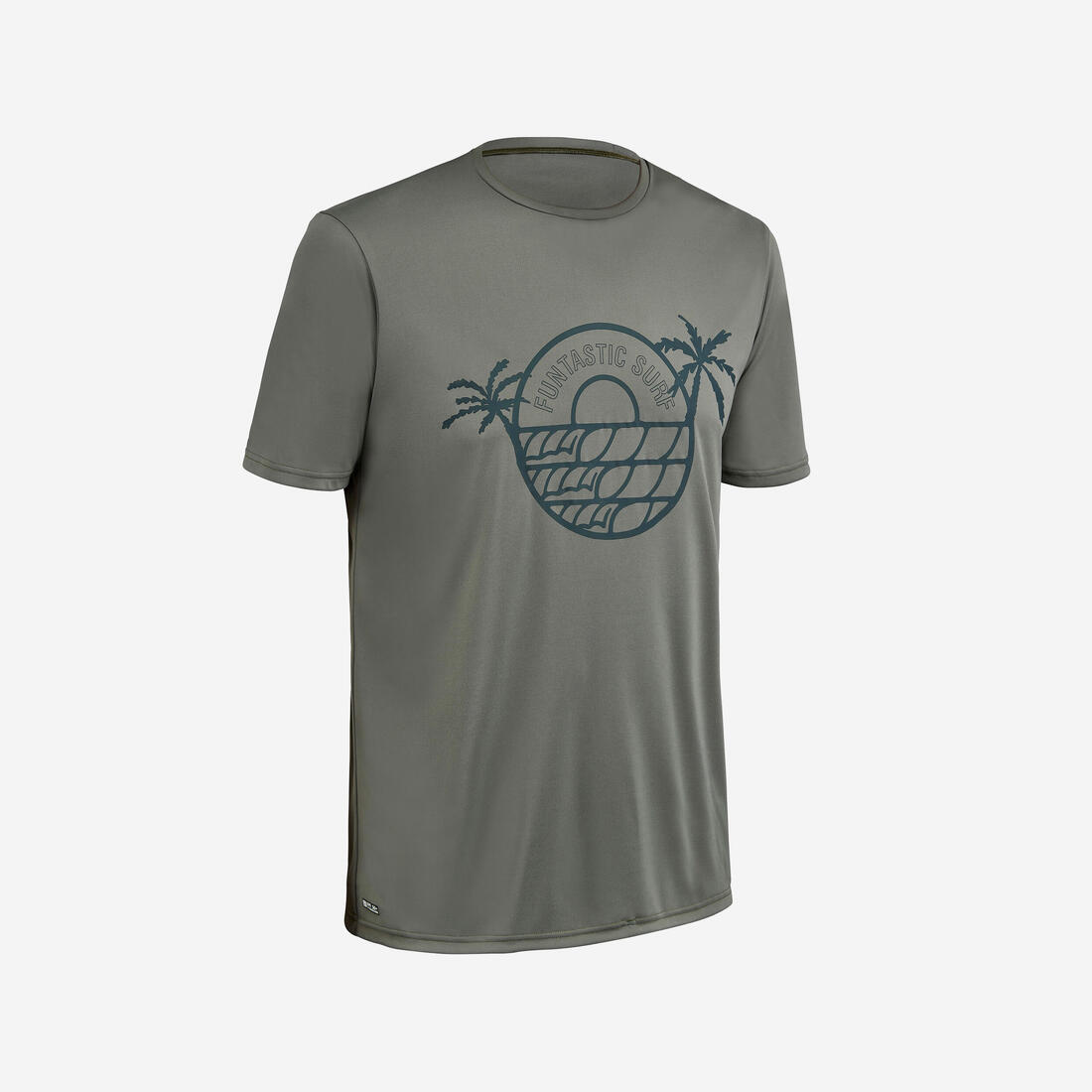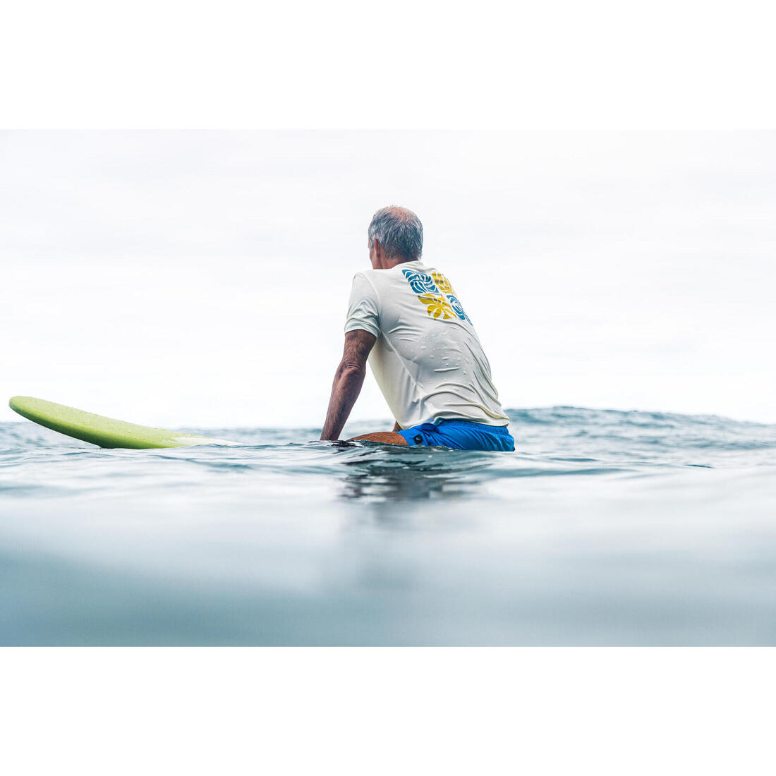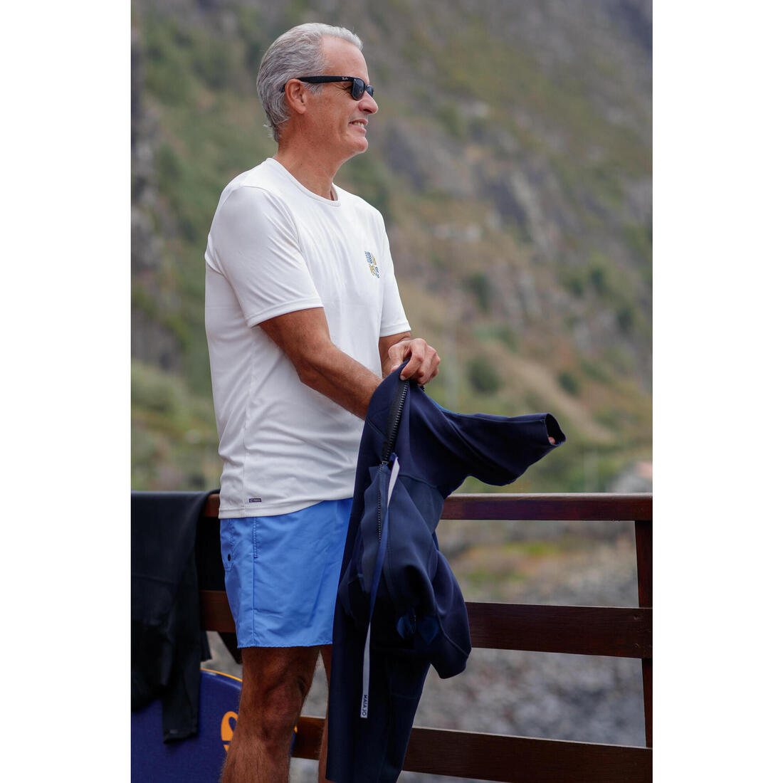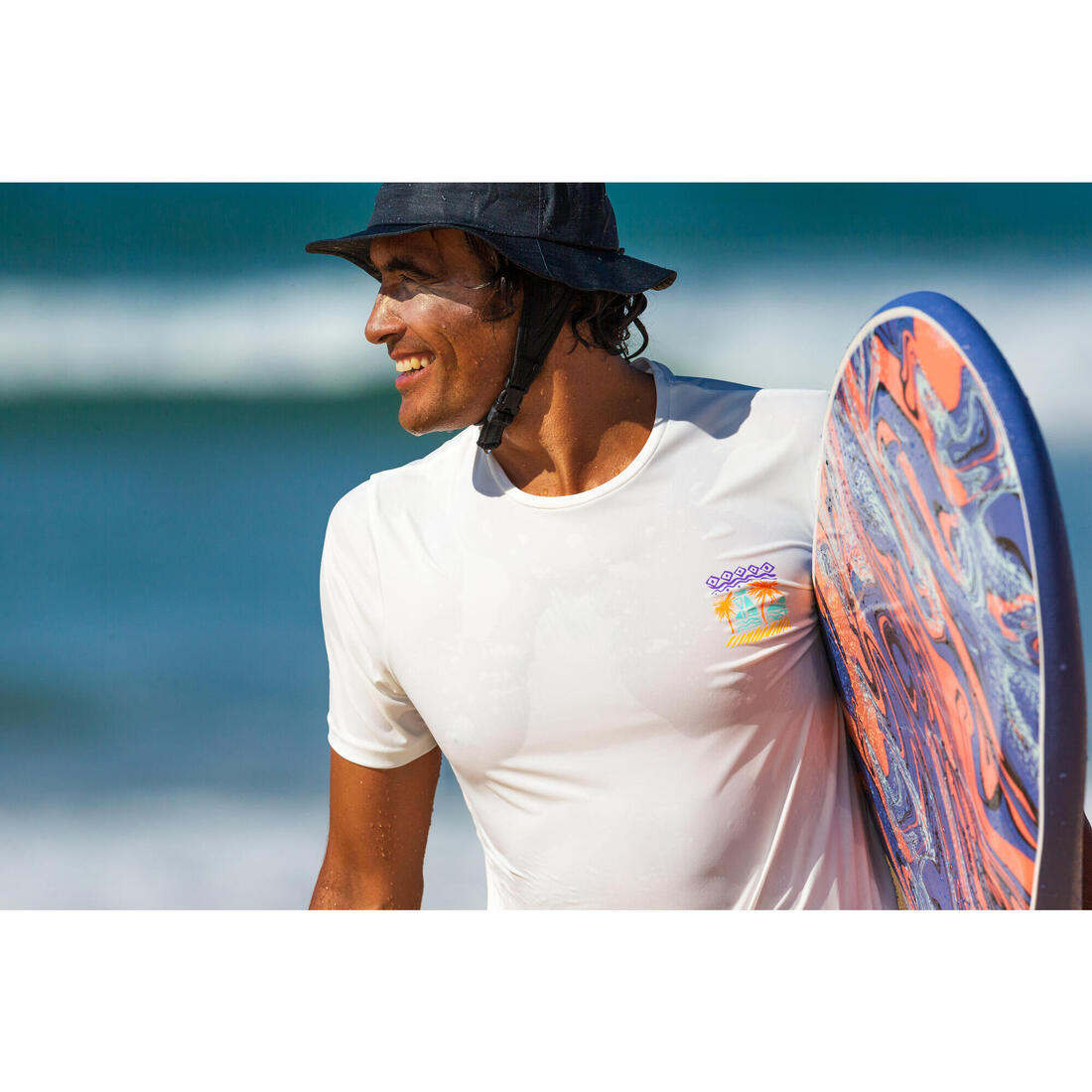 T-shirt anti-UV homme manches courtes pour protéger du soleil, même dans l'eau, et limiter les irritations au contact de la planche. Coupe ample pour un enfilage facile.