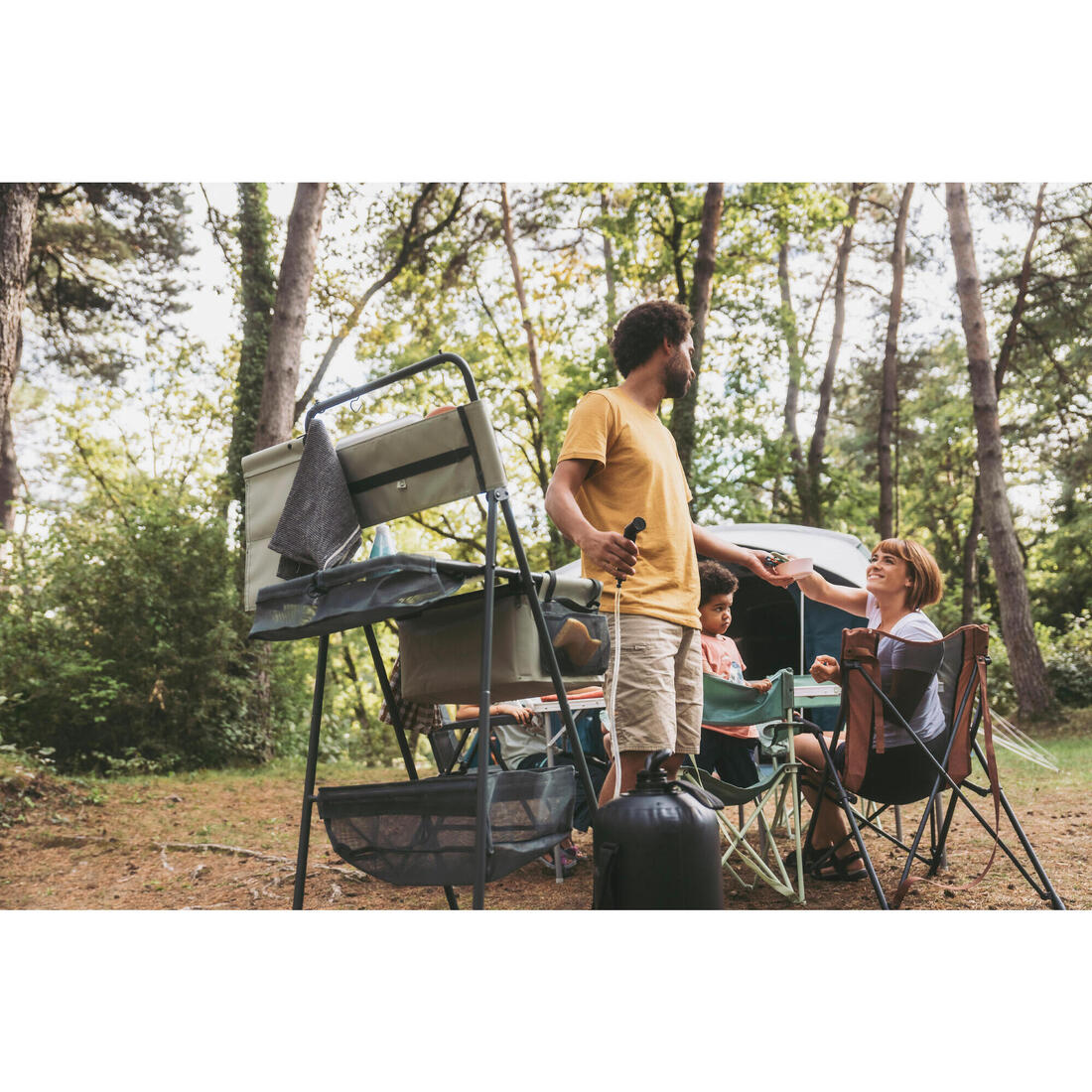 Installez-vous à table ou prenez un temps de repos confortablement assis sur ce fauteuil pliant de camping équipé de deux accoudoirs.