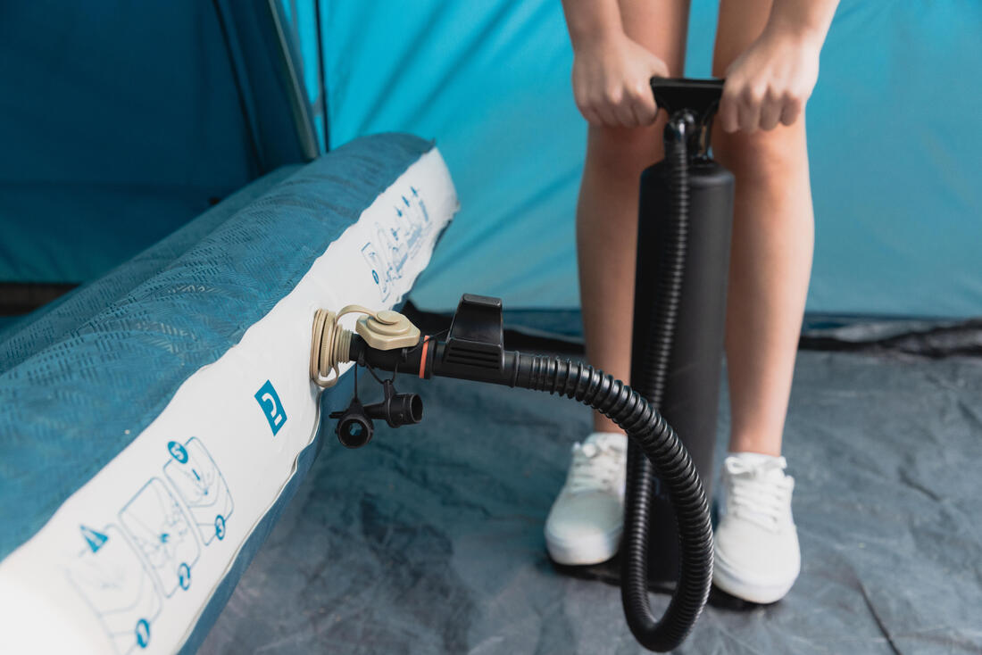 Nos concepteurs campeurs ont conçu cette pompe pour gonfler rapidement et efficacement votre tente gonflable Quechua. Elle peut aussi gonfler votre matelas.