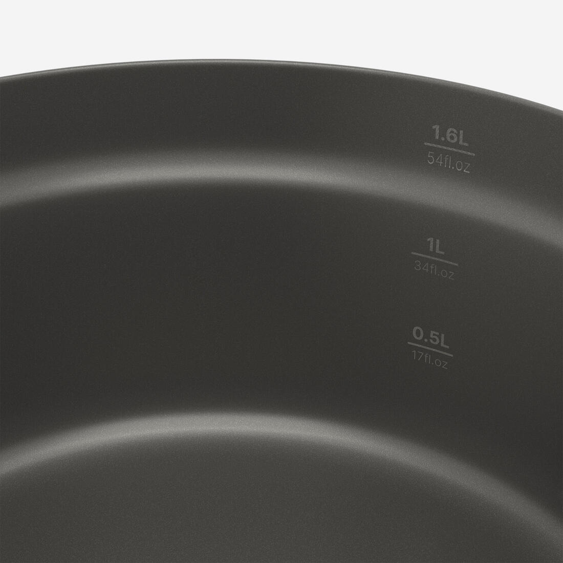 - Casserole : 1,6 L utile, 437g, Ø 18 cm x 9,5 cm - Poêle : 0,5L utile, 358g, Ø 18 cm x 4,5cm - Assiette creuse : 0,4 L, 62 g l'unité, Ø 17 cm - Mug : 0,20 L, 32g l'unité - Couverts : 20g le set - Couvercle / passoire : 89g - Dessous de plat en bois : 165g - Housse de transport : 34g