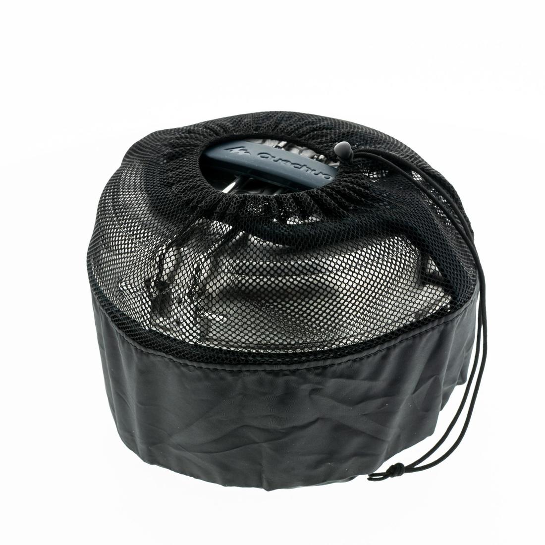 Pour optimiser l'encombrement et réduire le bruit, rangez les couverts sur le couvercle, puis placez mugs et assiettes dans la casserole. Le dessous de plat verrouille l'ensemble, et la housse facilite le transport, même sale. Et pas besoin d'être patient, le tout se fait en quelques secondes !