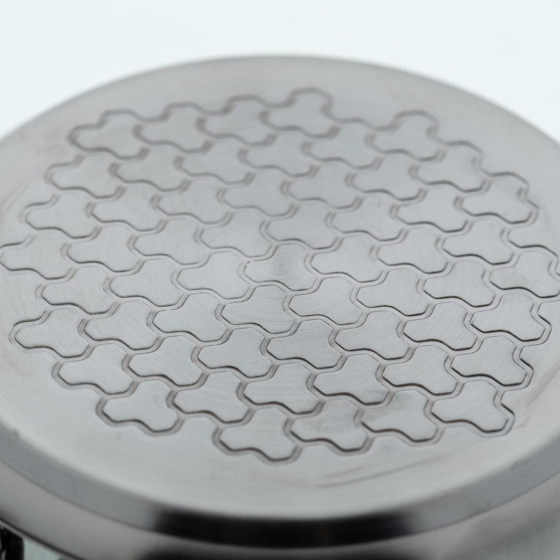 Nous avons opté pour l'acier inoxydable 18/8 pour sa résistance, sa résistance à la corrosion, et la sécurité alimentaire. Pour compenser sa faible conductivité, un double fond en aluminium a été ajouté pour mieux diffuser la chaleur. Résultat + d'efficacité de chauffe et - de gaz consommé.