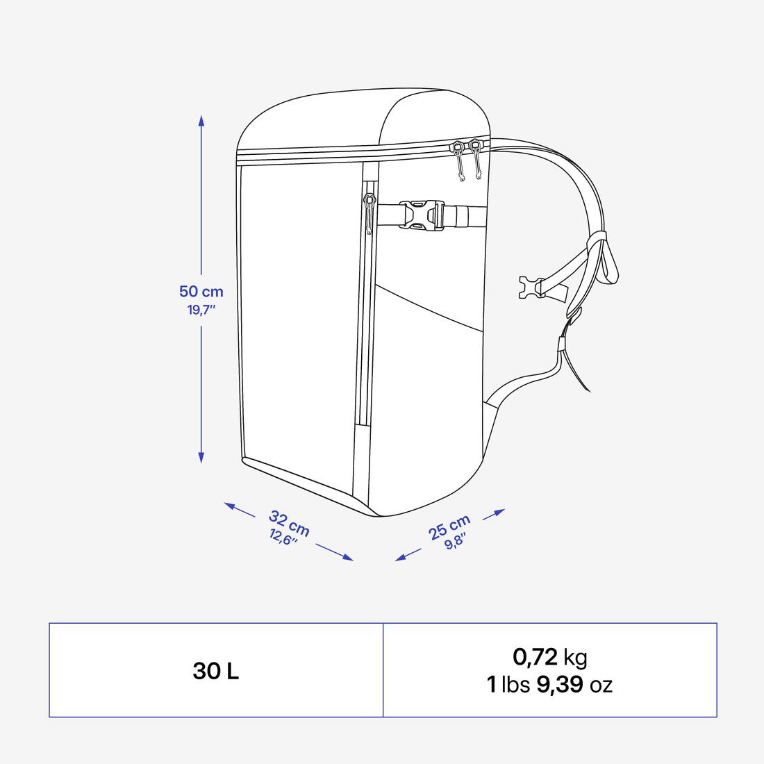 Volume : 30 litres | Poids : 720 g | Dimensions : 32 x 25 x 50 cm