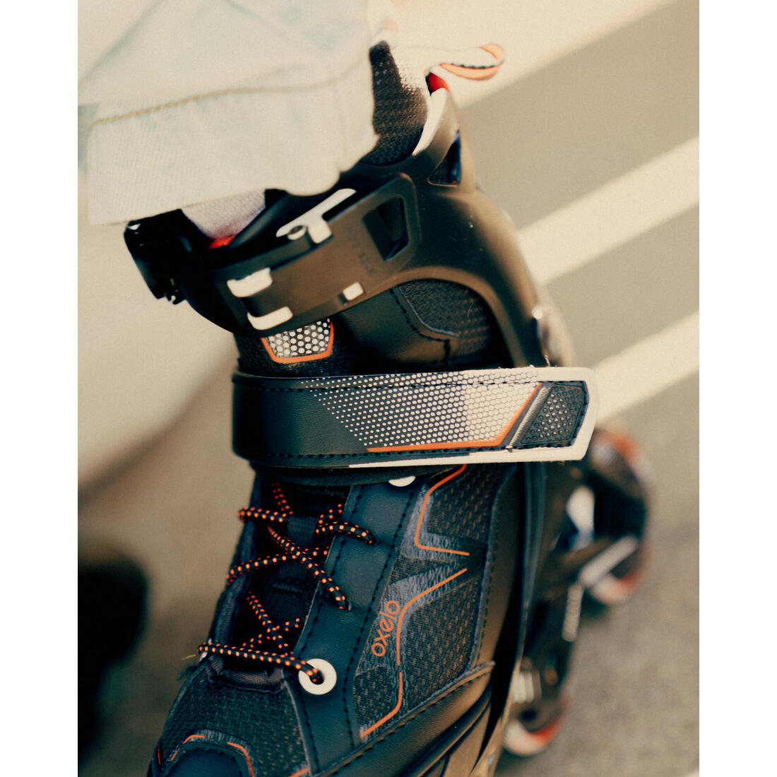 Chaussons semi-souples avec renforts en mousse pour plus de confort. En mesh ventilé (un tissu qui absorbe bien l’humidité), ce chausson permet de garder ses pieds au sec plus longtemps. Rollers faciles à mettre grâce à des serrages simples et efficaces : une boucle micrométrique sur le haut du chausson pour une meilleure précision + un scratch au niveau du cou-de-pied pour bien caler le talon dans la chaussure. Lacets élastiques sur tailles 29/32 et 32/35, lacets classiques sur taille 35/38.