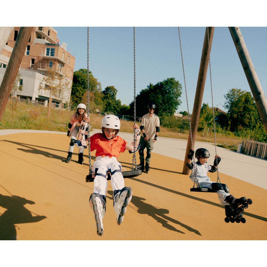 Contrairement au plastique qui ripe mais ne freine pas, la gomme présente une bonne adhérence : elle permet à votre enfant de patiner sans glisser lors des poussées, et de freiner efficacement. En plus, la gomme s’use moins vite que le plastique. Nos équipes Oxelo s'engagent pour la sécurité, et ce quel que soit le niveau technique de l'enfant. Nous avons donc fait le choix d'équiper tous les rollers enfants de roues et freins en gomme et non en PVC.