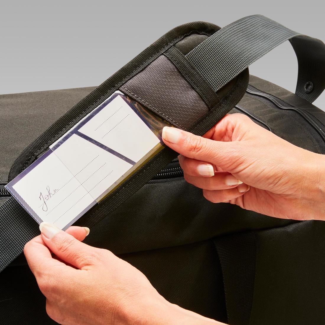 Sur le portage épaule, nous avons pensé à mettre une pochette pour ajouter ses informations personnelles (nom, adresse). C'est indispensable pour repérer son sac au sein du collectif.
