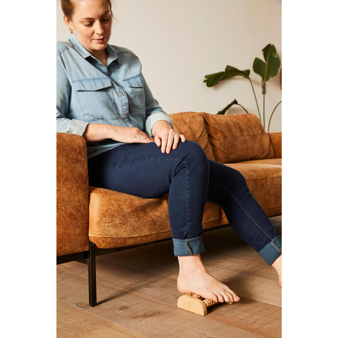 Tout d'abord, posez-le sur une surface plate et stable, idéalement au sol. Installez-vous confortablement. Vous pouvez tester debout, mais on vous recommande la position assise pour plus de confort, et pour un maximum de détente. Vous êtes bien installé, c'est parti, posez votre pied, et faites-le rouler d'avant en arrière sur les rouleaux.