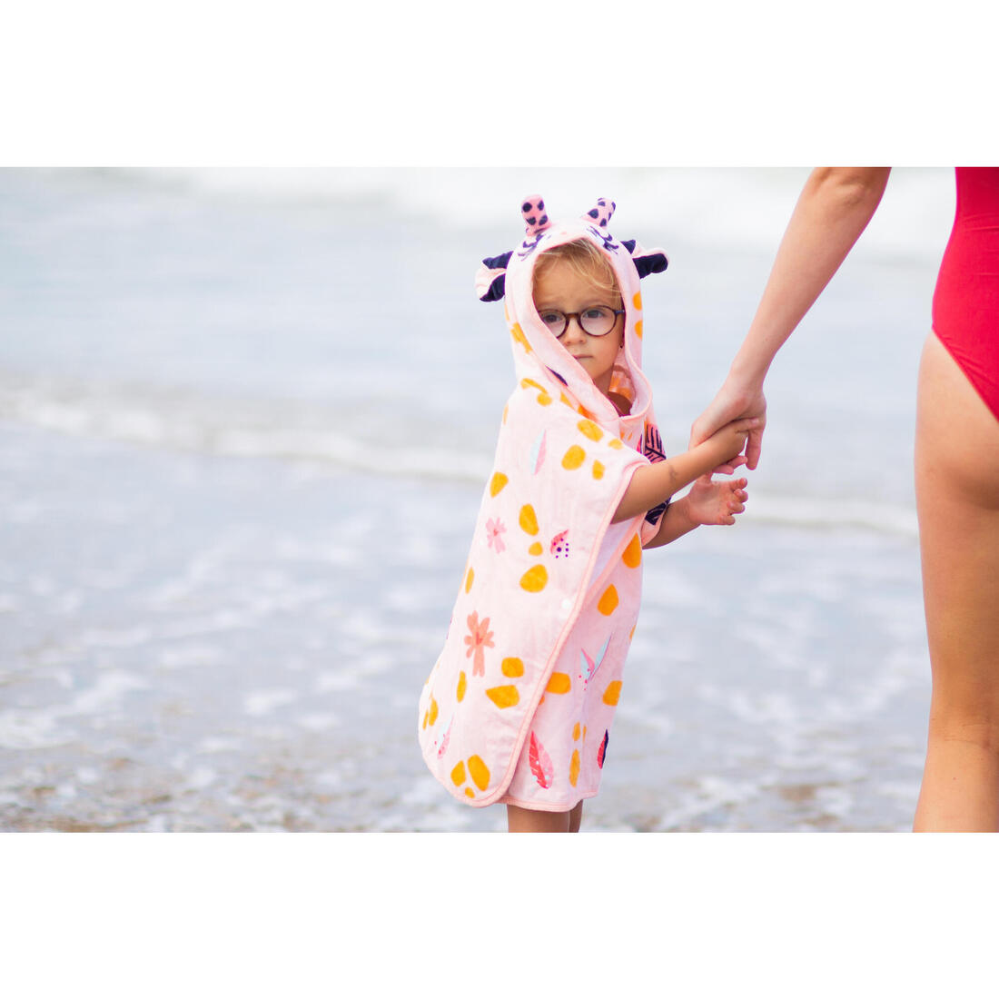 Poncho de Bain Coton Bébé - Girafe Blanc Rose