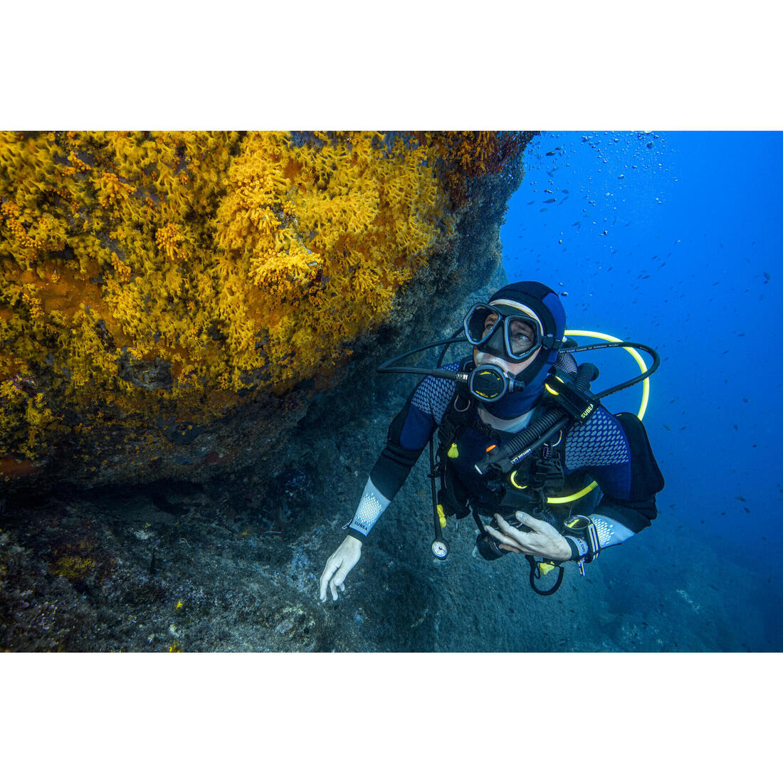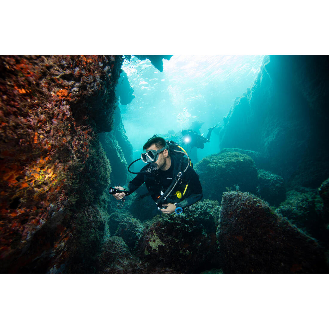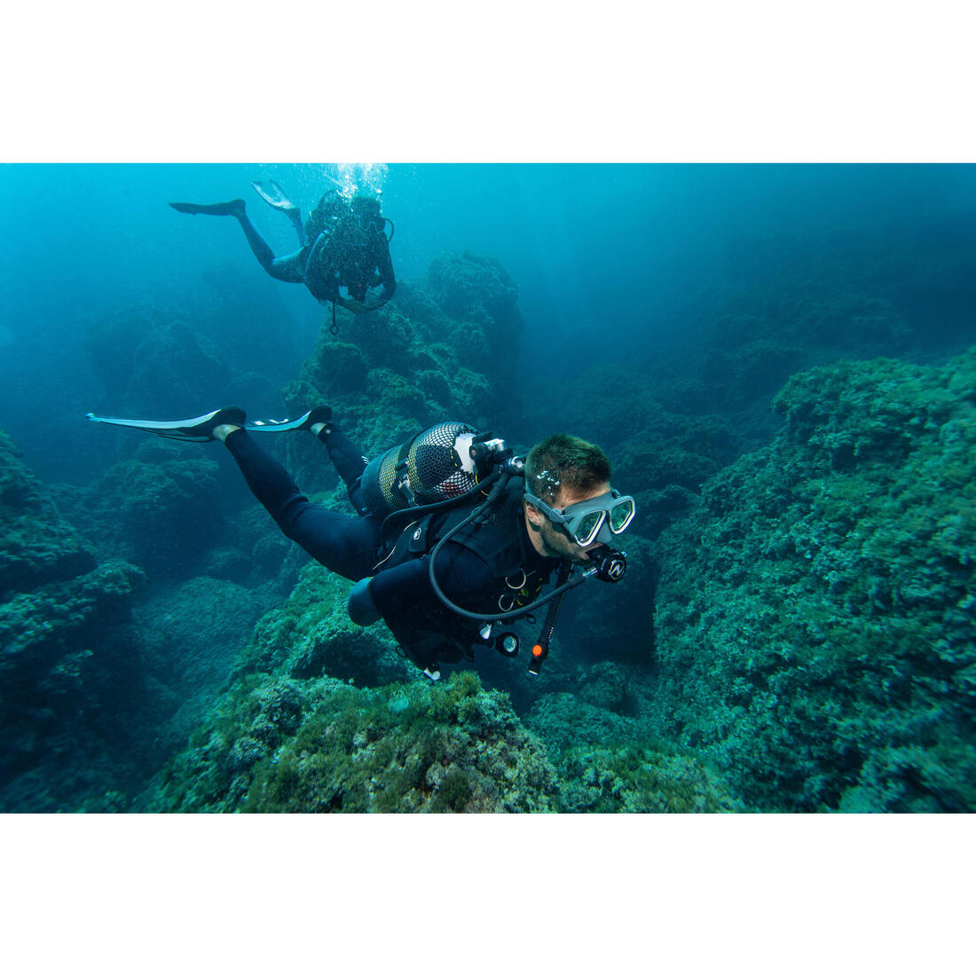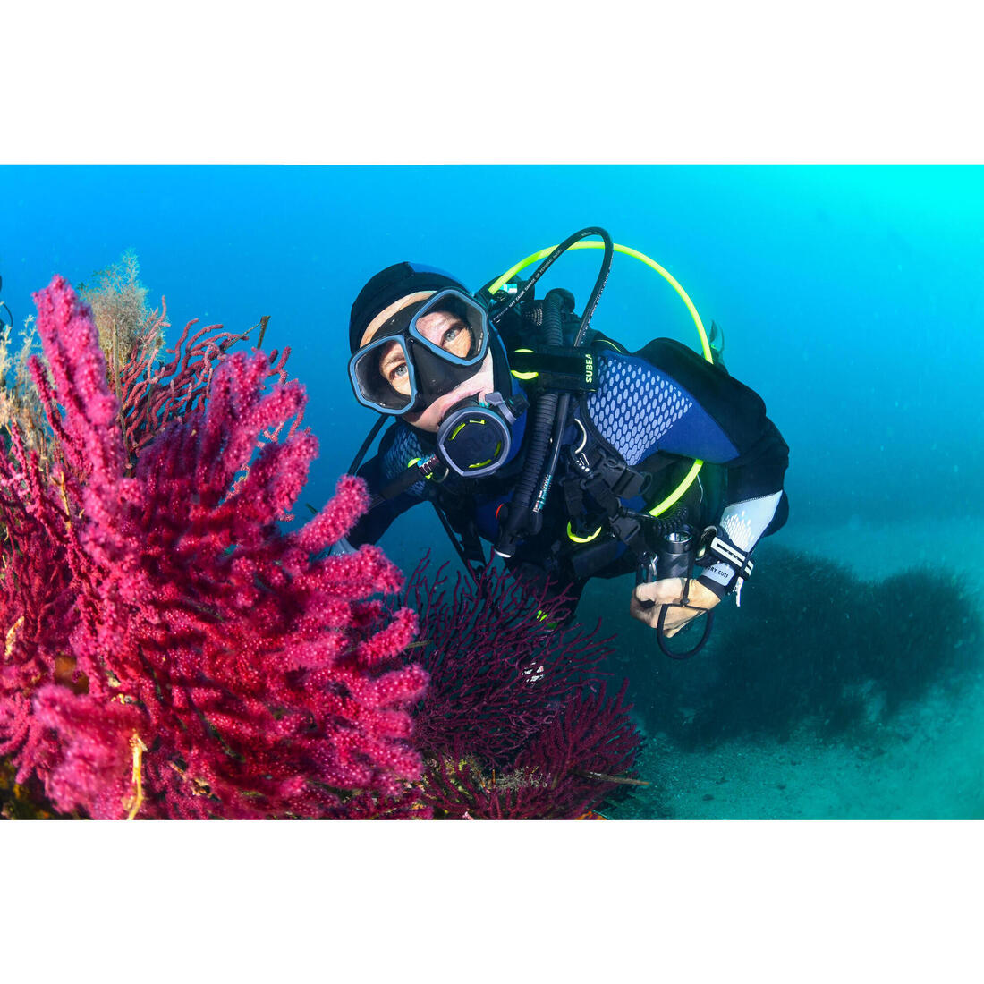 Le pratiquant de sports subaquatiques recherchant un masque bi hublot polyvalent, idéal pour le snorkeling et la plongée bouteille.