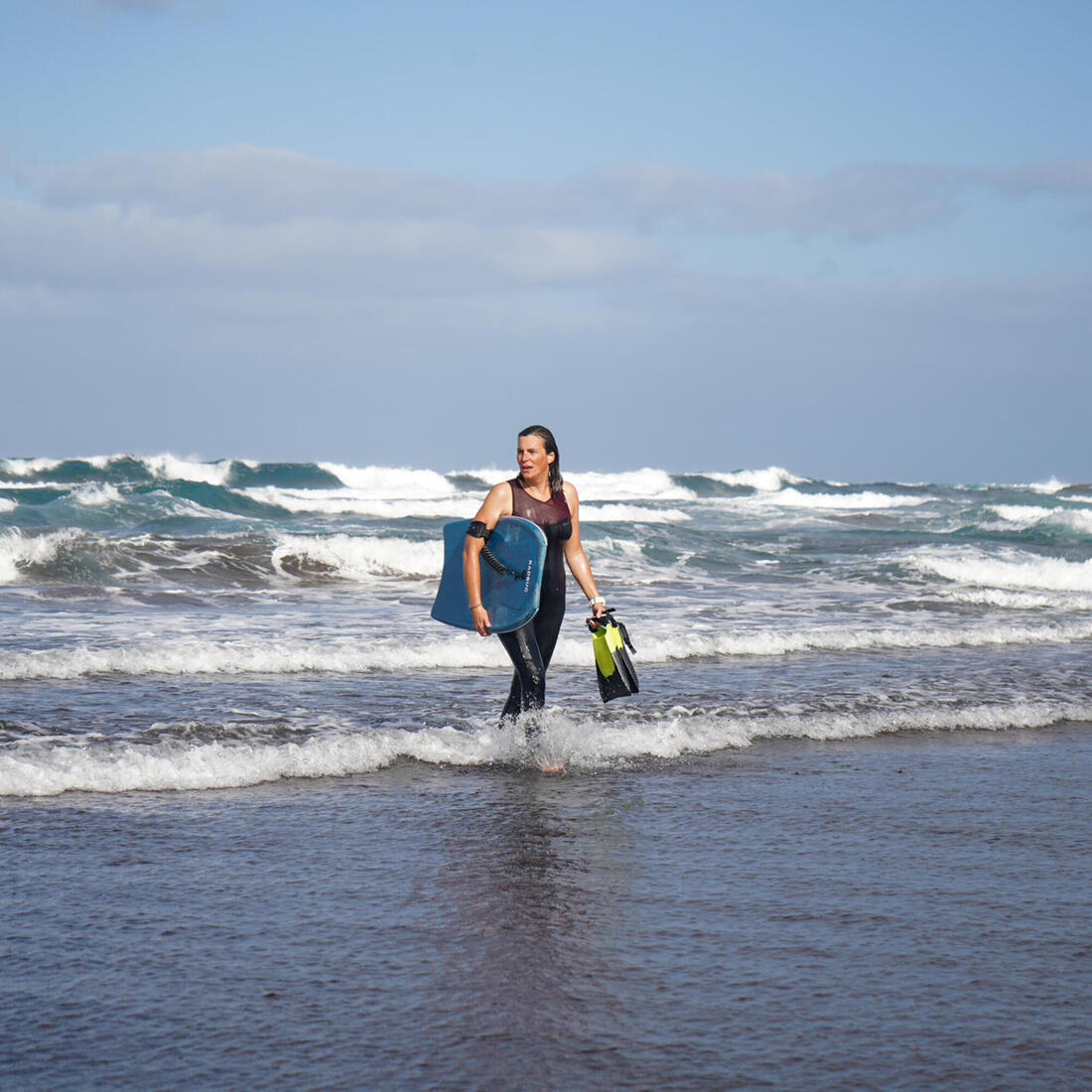 Pour les bodyboarders confirmés souhaitant progresser dans des vagues jusqu'à 1m50 avec palmes. Portez un top (ou combi) pour éviter les irritations. 4 tailles.