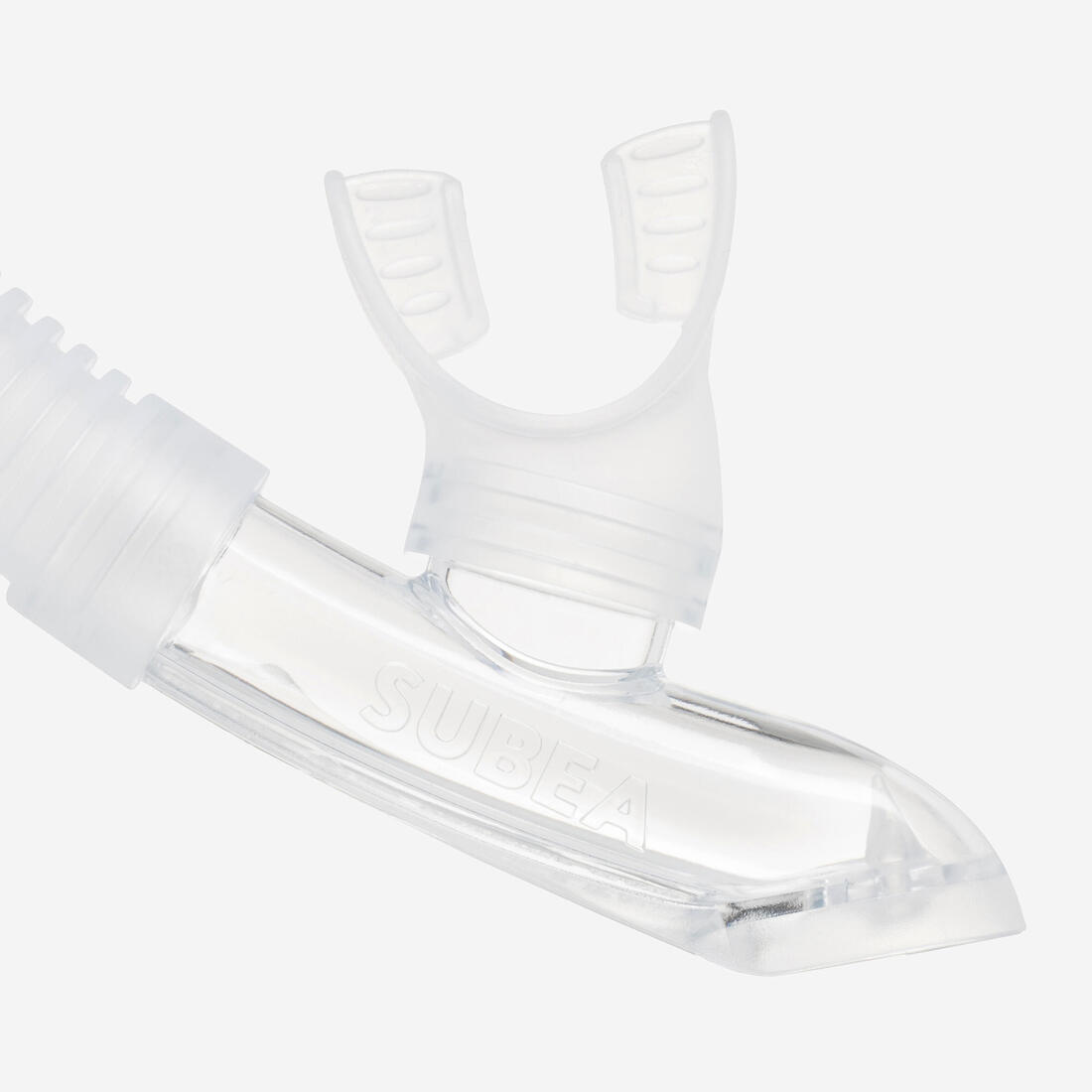 Le silicone est un matériau extrêmement souple. Une jupe en silicone s'adapte en douceur aux contours de votre visage, favorisant ainsi l'étanchéité. L'embout en silicone apporte un confort accru au niveau de la bouche.