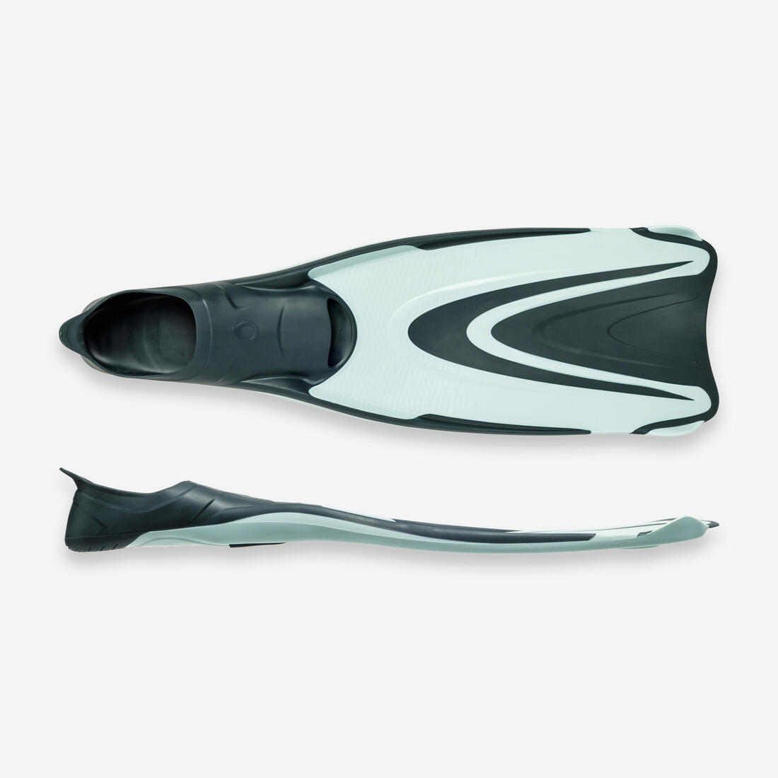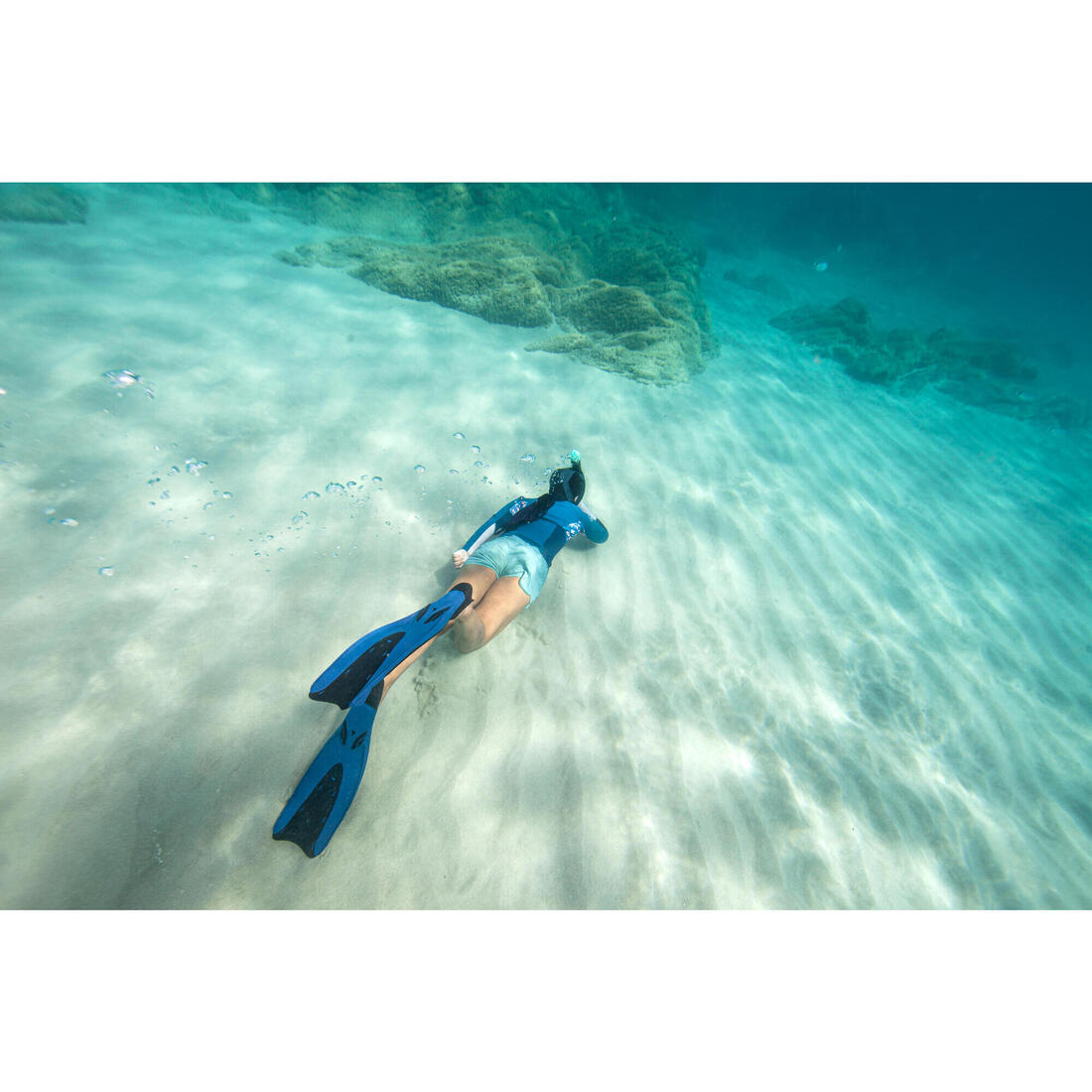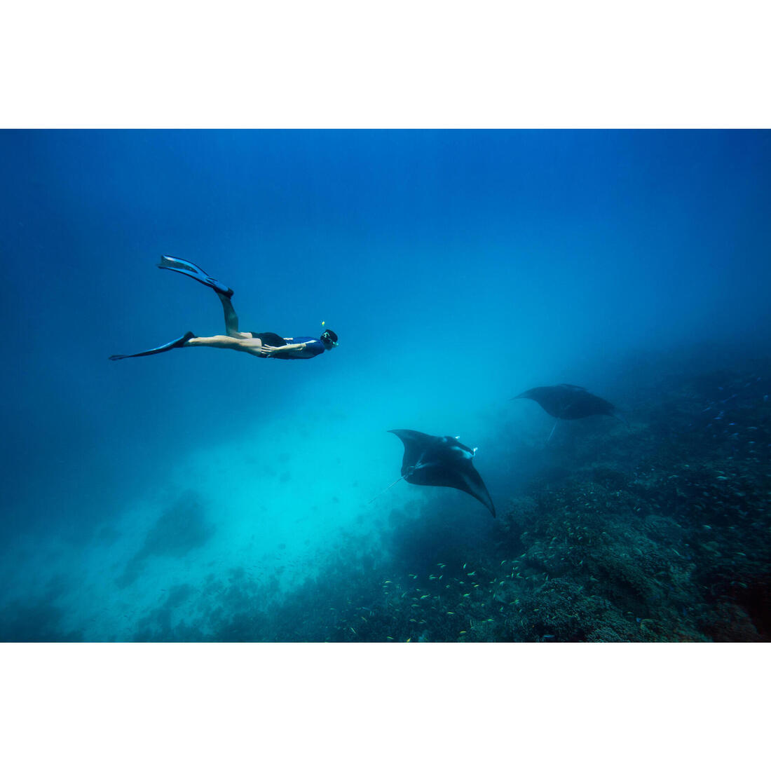 Ces palmes proposent une voilure bimatière qui permet d'avoir un effet "cuillère" avec un bon guidage de la palme sous l'eau pour un palmage en souplesse. Ses chaussons ergonomiques sont confortables