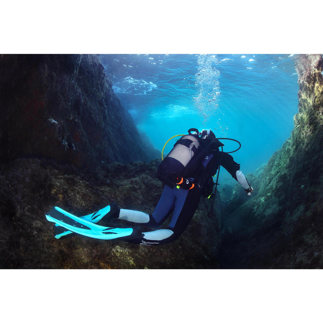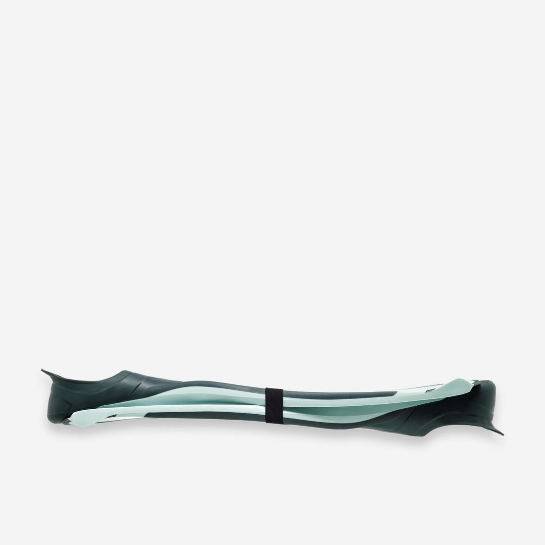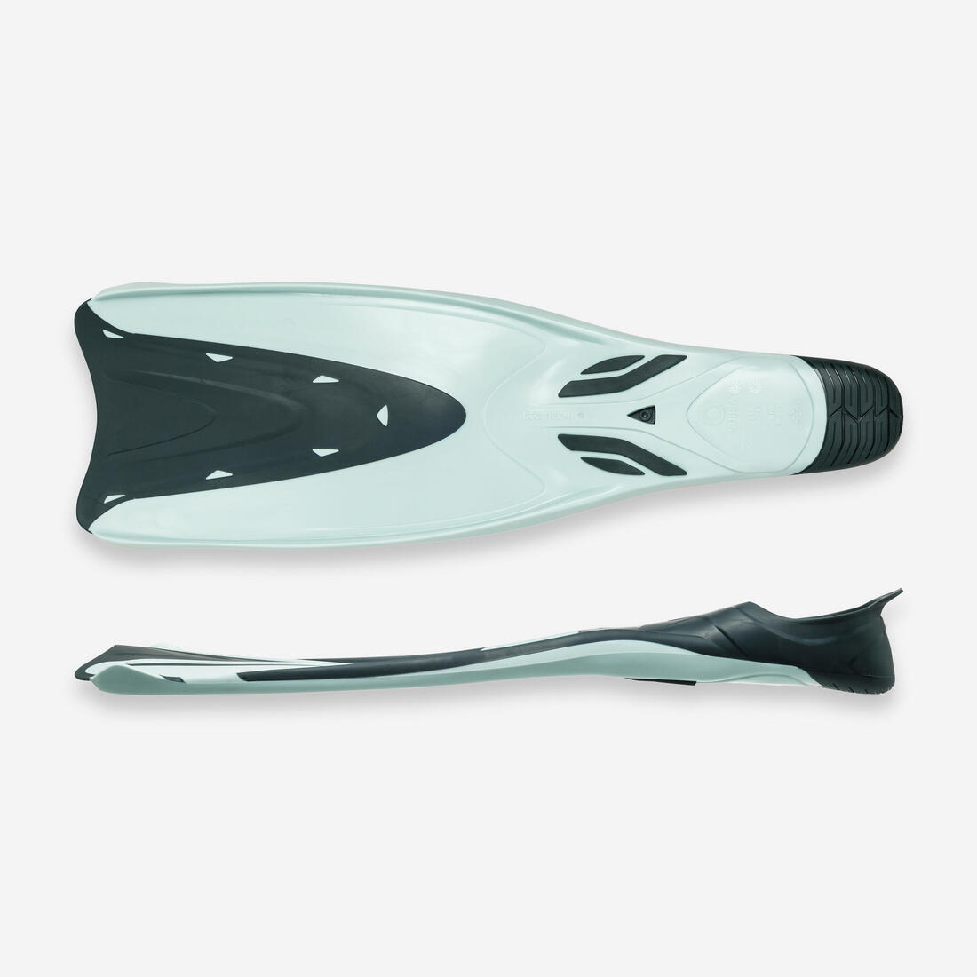 Ces palmes proposent une voilure bimatière qui permet d'avoir un effet "cuillère" avec un bon guidage de la palme sous l'eau pour un palmage en souplesse. Ses chaussons ergonomiques sont confortables