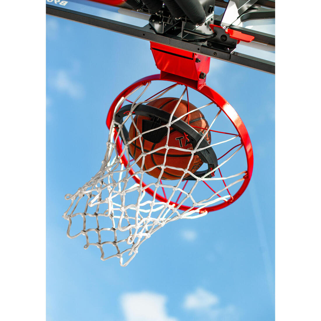 L’anneau de détection s'installe facilement sur tous les arceaux du marché. Il se fixe à l’intérieur du filet en utilisant les crochets existants. La coque de téléphone est tout aussi simple à installer sur le poteau grâce à sa sangle de fixation. Le smartphone se sécurise grâce à la mollette de serrage latérale. Vous pouvez également poser la coque sur le côté du terrain, dans un rayon de 8m autour du panier pour assurer la connexion Bluetooth.