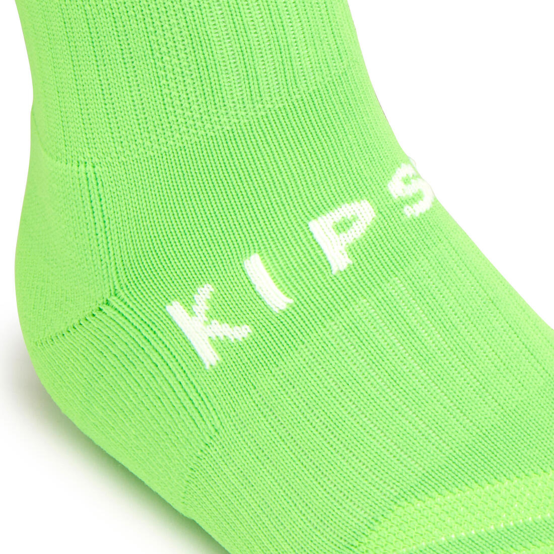 En observant le jeune footballeur confirmé sur les terrains, nos équipes de concepteurs passionnés de football ont constaté l'importance du maintien dedans une chaussette de football.Nos équipes de conception ont donc développé les chaussettes de football F 500 à l'aide d'un fil polyester contenant de l'élasthanne pour éviter les glissements au niveau du mollet. Sans oublier un tissage spécifique et resserré au niveau de la cheville et du coup de pied.