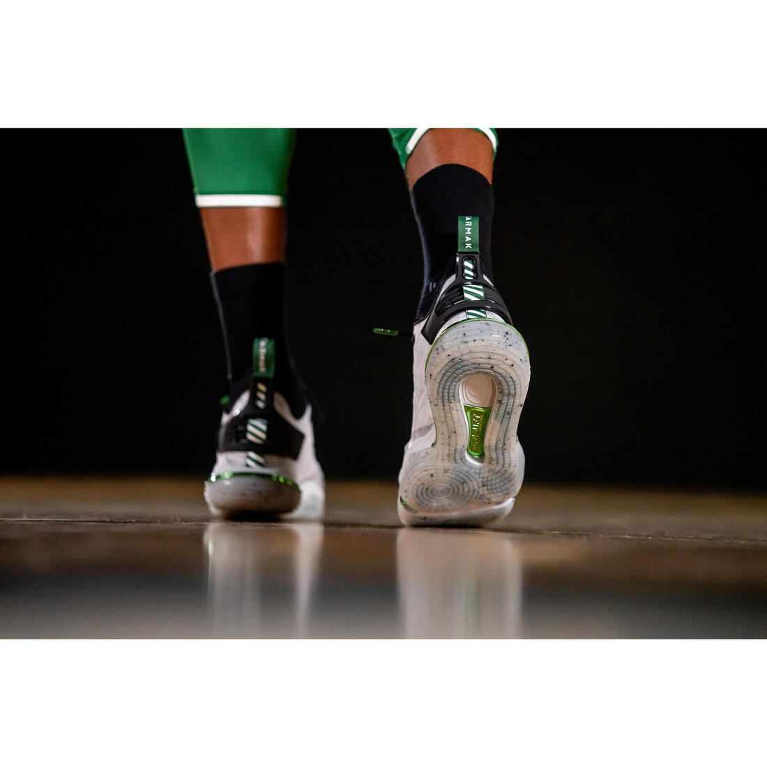 La chaussure de basket SE900 est la plus technique de toute la gamme TARMAK. La semelle de notre chaussure intègre un concept intégrant une plaque anatomique à la fois légère et rigide en TPU (Polyuréthane Thermoplastique) polymère aux performances supérieures, située entre 2 couches de mousse EVA hyper réactives et aux propriétés bien distinctes : une couche supérieure plus rigide et une couche inférieure plus souple. L'association des 2 vous procure à la fois amorti, stabilité ma