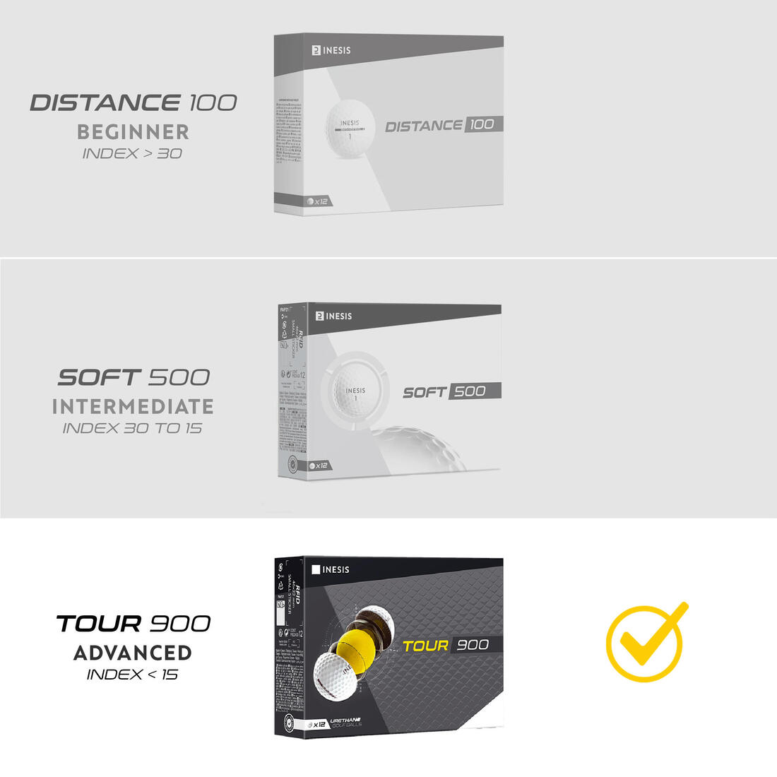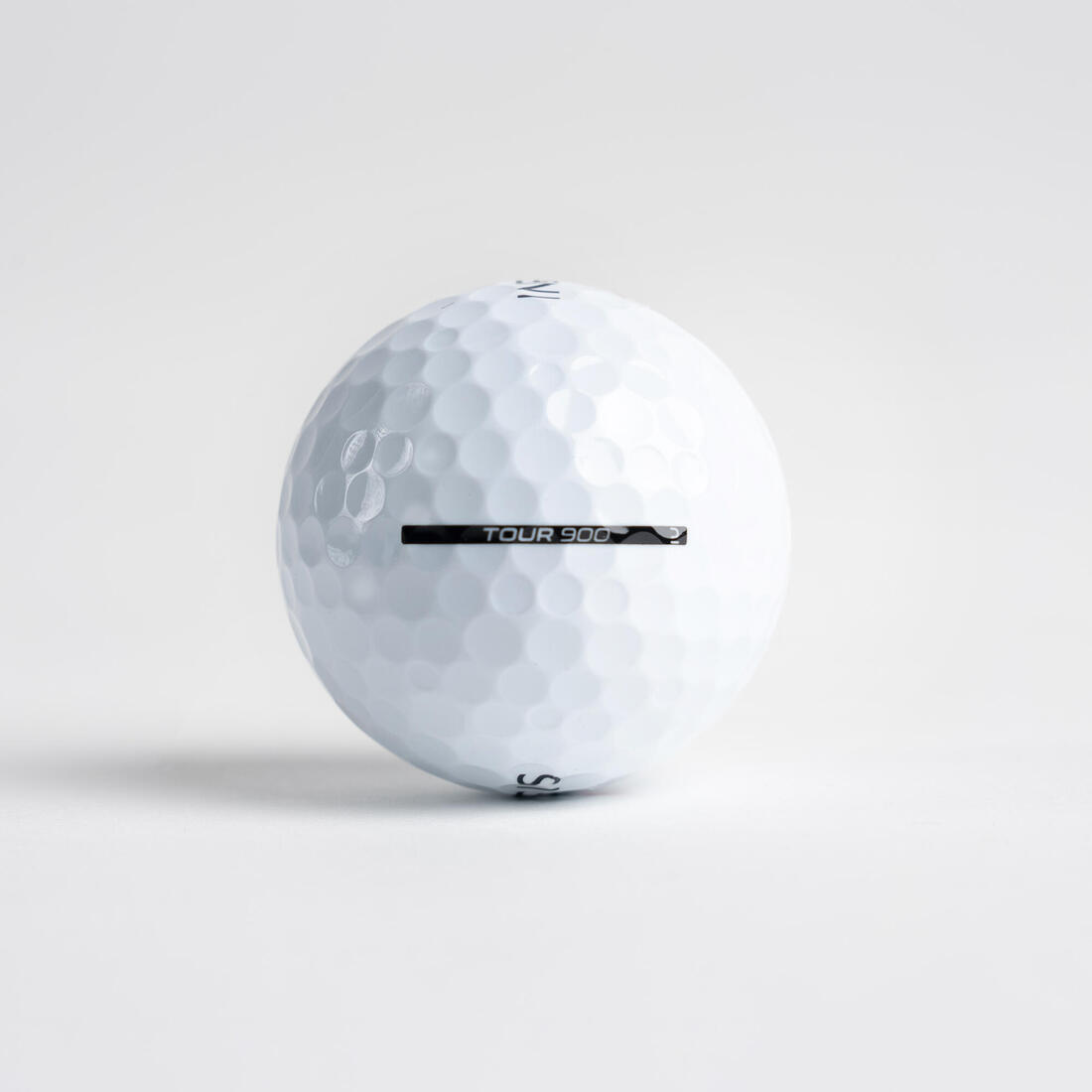 La balle Tour 900 fait partie des balles pour joueurs experts. On lui demande d'être longue au driving, et de s'arrêter très vite sur les attaques de green. Ce sont deux qualités qui s'opposent. Pour le driving, il faut une balle qui sorte vite de la face du driver avec peu de backspin (effet rétro). Et pour le wedging, il faut au contraire un max de backspin. Pour faire ça, on est obligé de partir sur une balle 3 pièces.