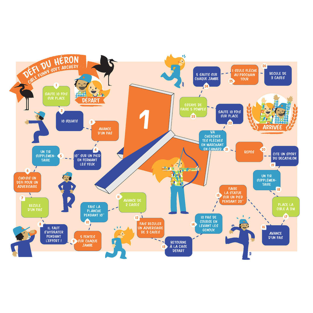 4 Défis vous sont proposés à jouer à plusieurs 1 Jeu type, jeux de plateau, le Jeu du Héron que nous avons spécialement créé pour vous, entre vous les " FUN Archers" et " Fun Archères" !