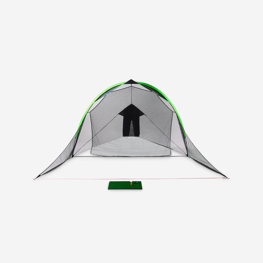 Pour vous entrainer au golf en toute sécurité à la maison, ce filet vous permet d'effectuer des pleins coups de fers et de bois avec de vraies balles de golf.
