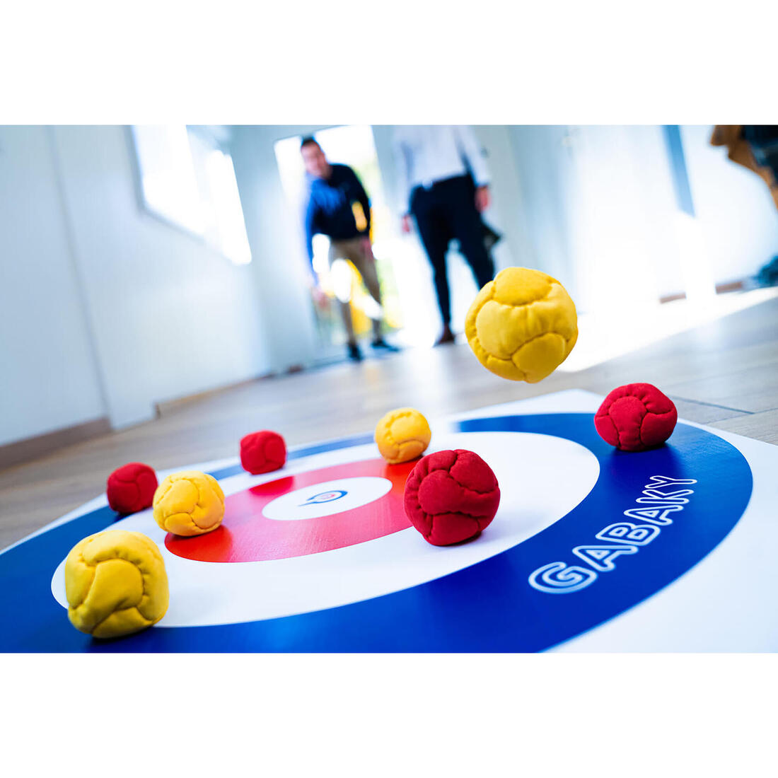 Influencé par la pétanque, le palets et le curling, le gabaky est un jeu de précision tout terrain. Choisissez votre couleur et lancez les balles au centre de la cible pour gagner la partie.