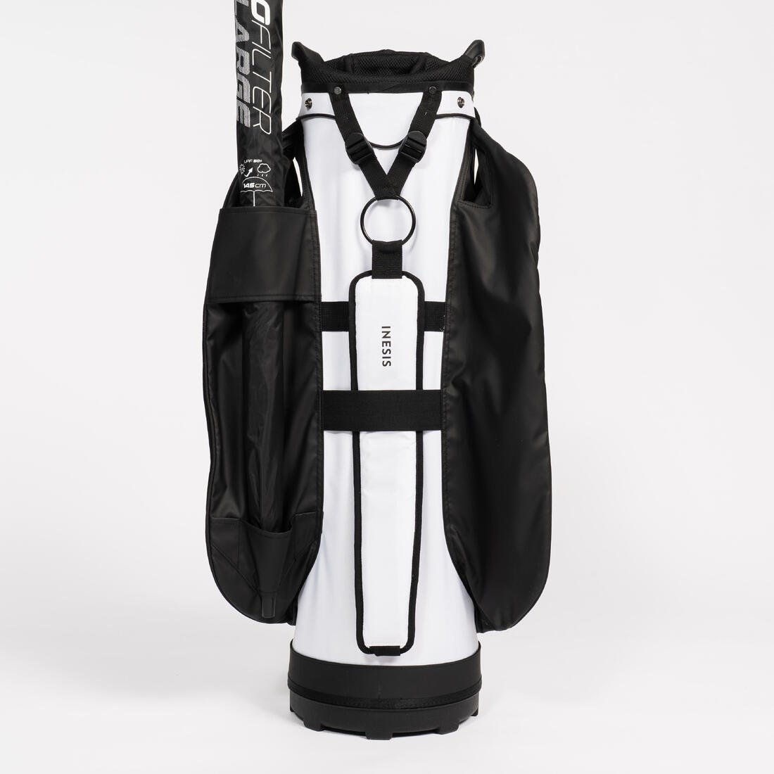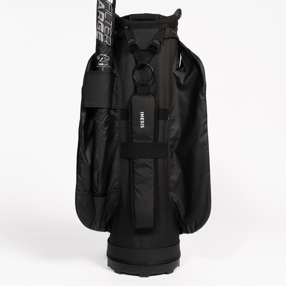 - Anneau en sangle résistant pour accrocher votre serviette, votre télémètre, votre brosse de nettoyage ou vos autres accessoires. - Tissu agrippant pour attacher votre gant de golf - Poche extérieure en mesh - Passants porte parapluie - Larges tires-zip (faciles à manipuler) - Compartiment parapluie - Housse de protection pluie en tissus enduit polyuréthane