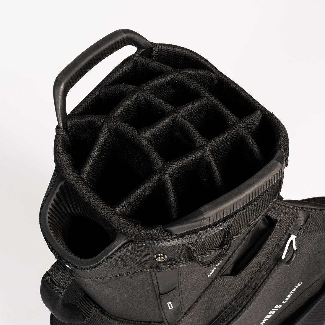 15 compartiments de rangement pour vos clubs / 17 clubs max Les compartiments sont séparés de haut en bas. Ajout d'un compartiment Putter supplémentaire : nous avons également ajouté un rangement extérieur pour ranger un putter large grip.