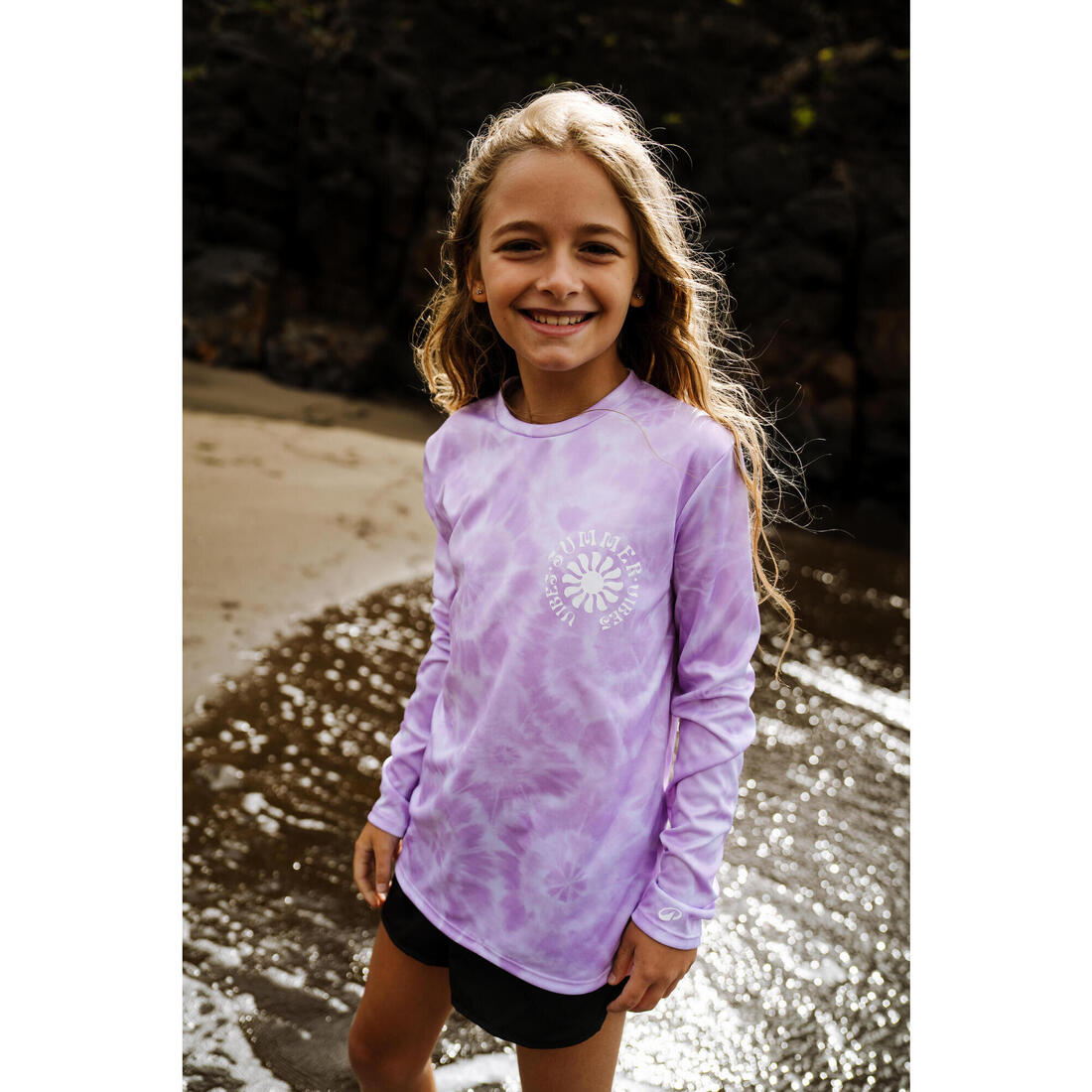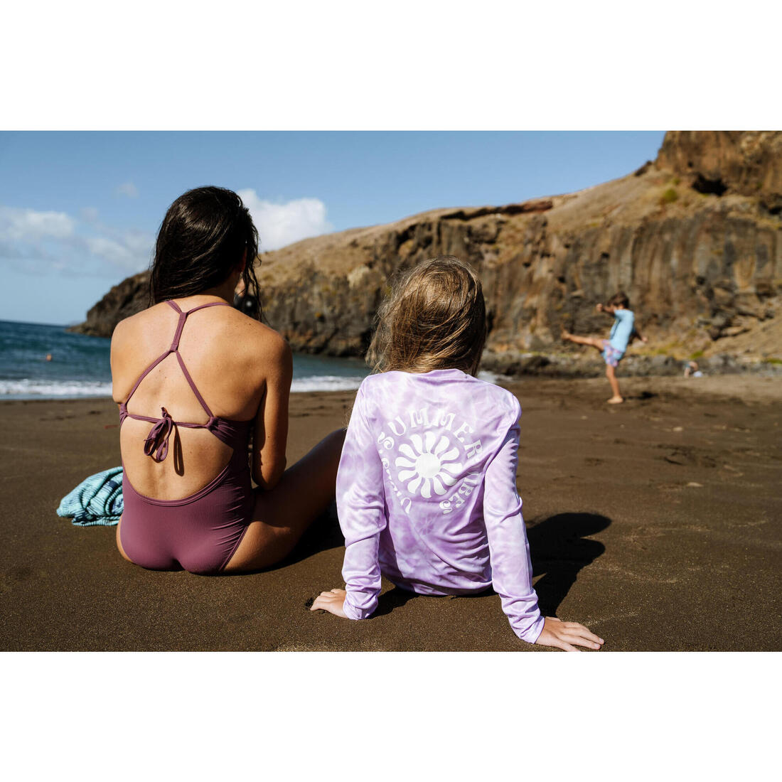 T-shirt anti UV manches longues surf Junior - 100 Vibes parme