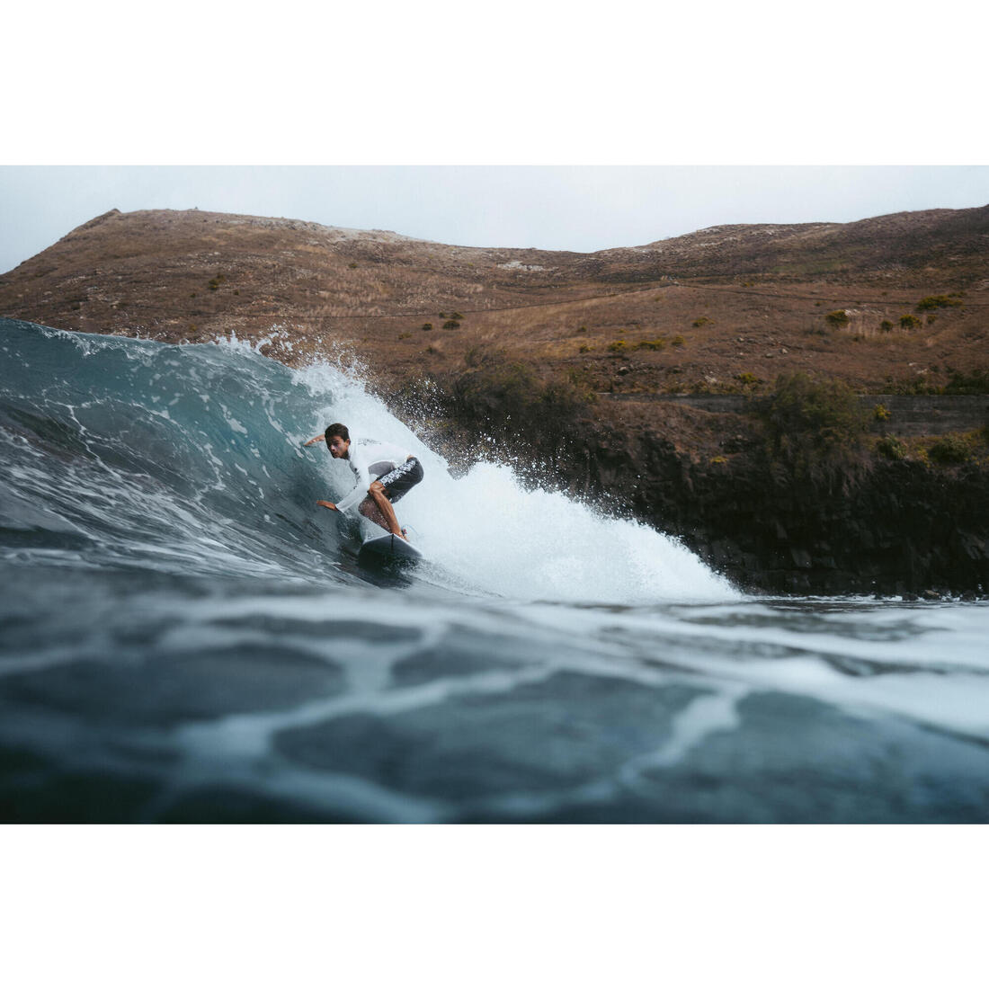 Ce t-shirt anti-UV limite les frottements avec la planche de surf ou de bodyboard. La coupe ample du tee shirt permet un enfilage plus facile et un meilleur confort lorsqu'il est sec. Optez pour la coupe ajustée du top 100 ou 500 si vous privilégiez le confort mouillé ou si vous le portez sous la combi. La limitation des irritations est validée pour des sessions d'1 heure. Si vous prévoyez de surfer plus d'1h le choix du top UV 500 sera plus adapté grâce aux panneaux sans couture sous les bras.