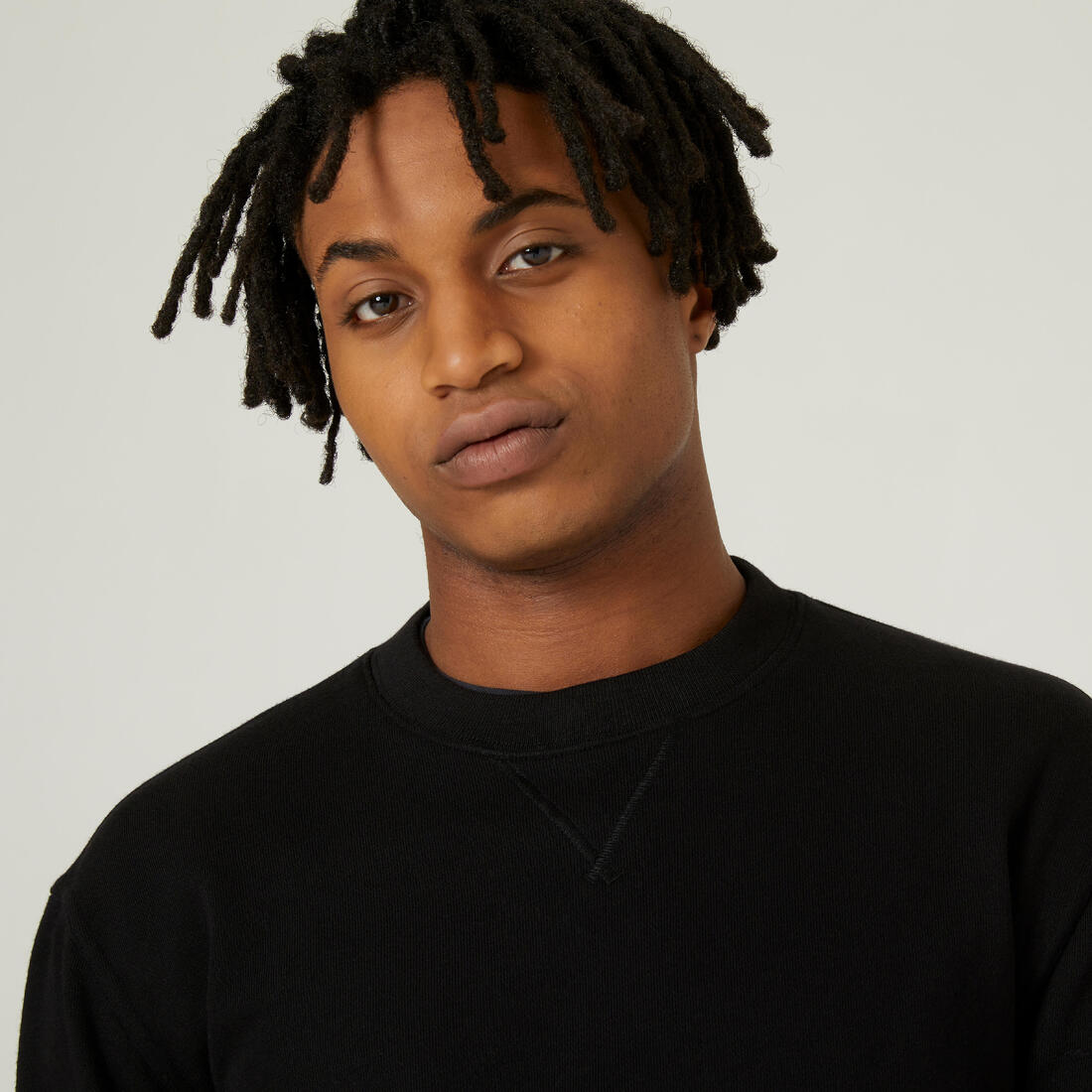 Un composant 350 g/mm² en French Terry, ça donne un sweat épais et chaud au tombé parfait qui dure longtemps. Nous avons travaillé ses finitions et sa coupe pour qu'il soit véritablement indémodable.