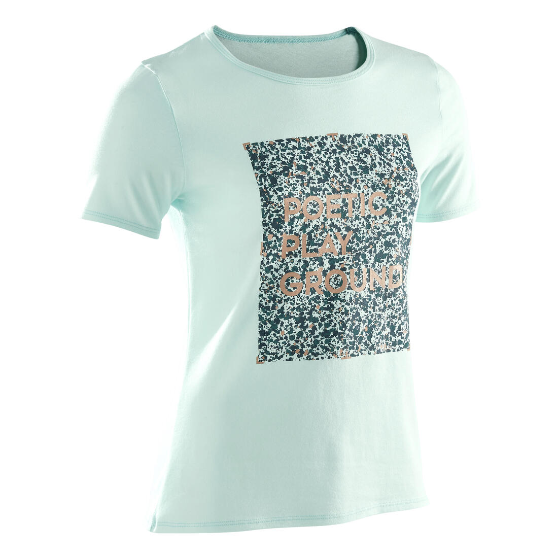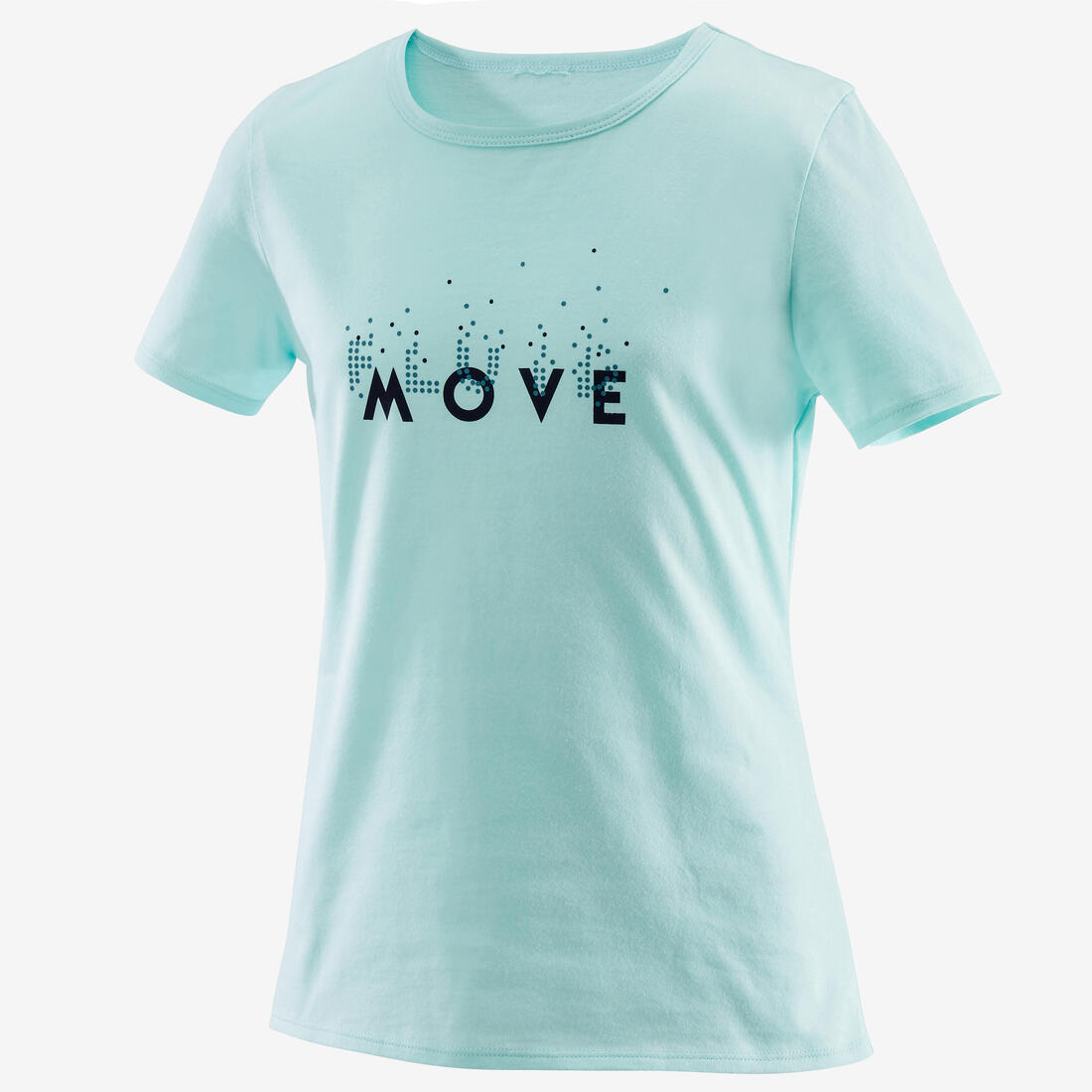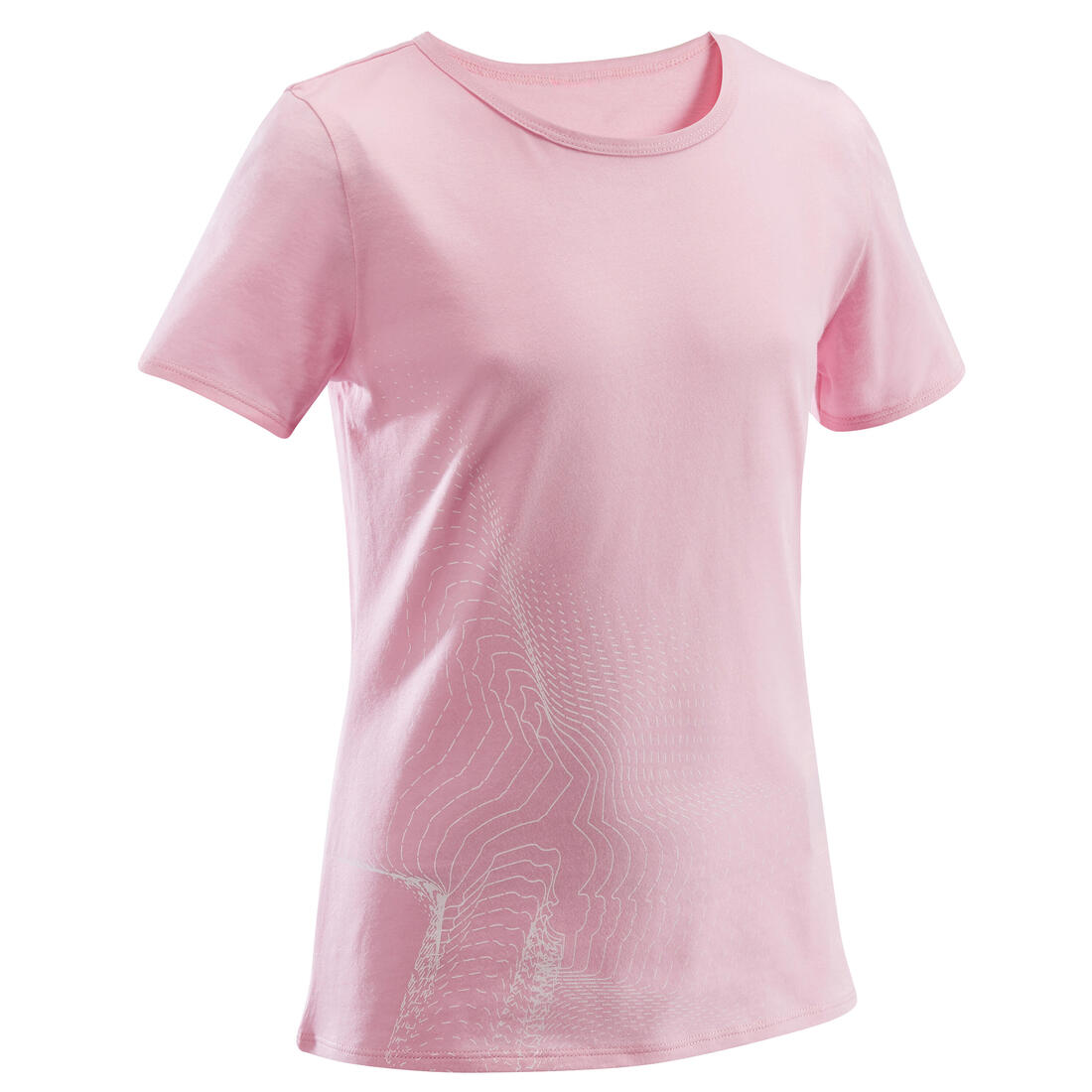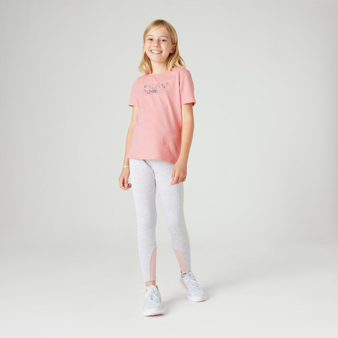 Notre mannequin porte le t-shirt manche courte 100 en taille 10-11 ans, elle mesure 1m43.
