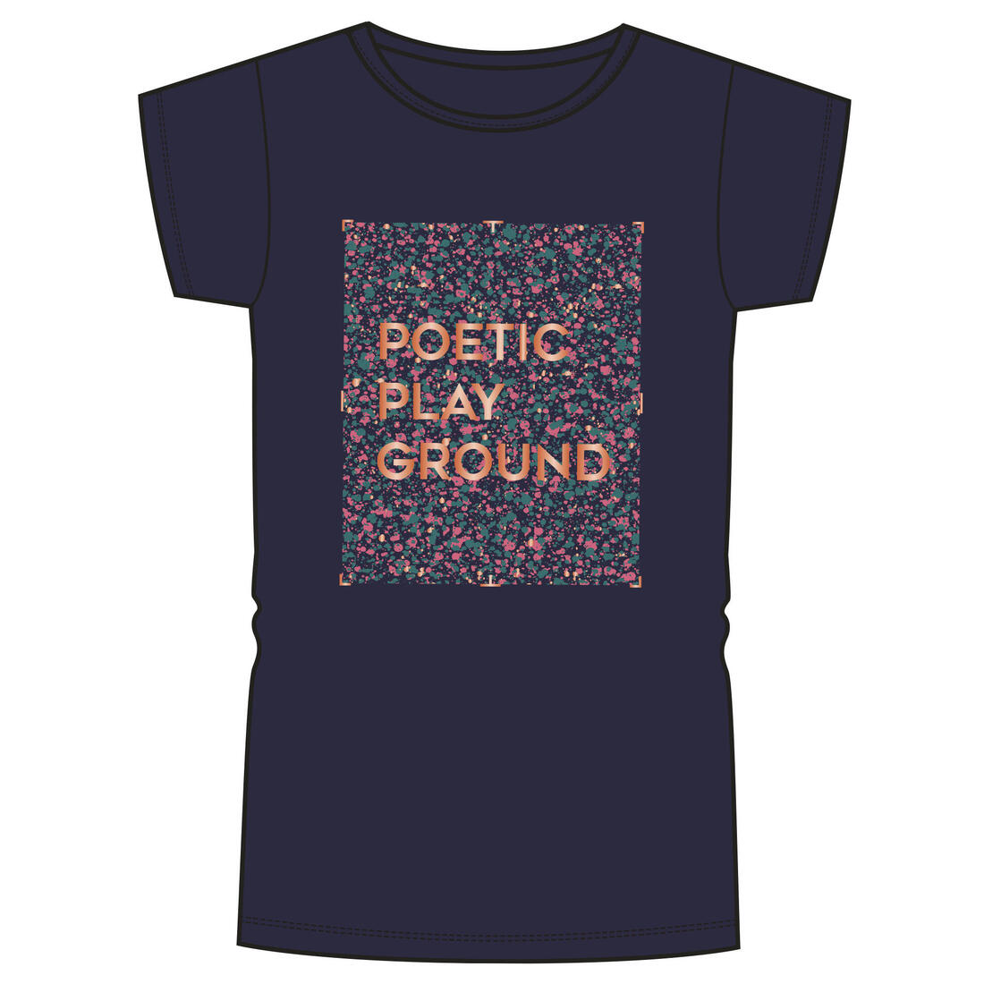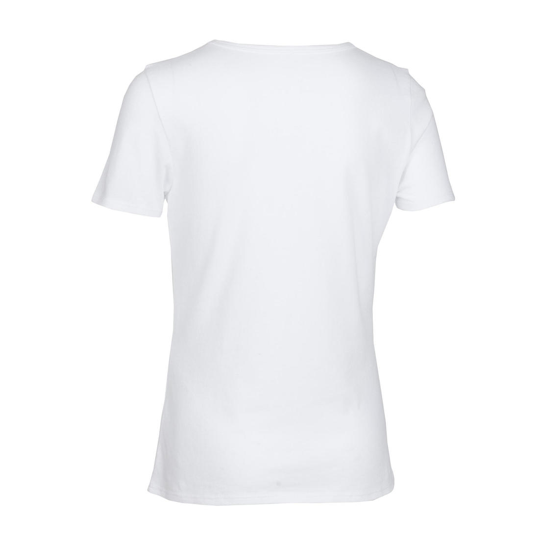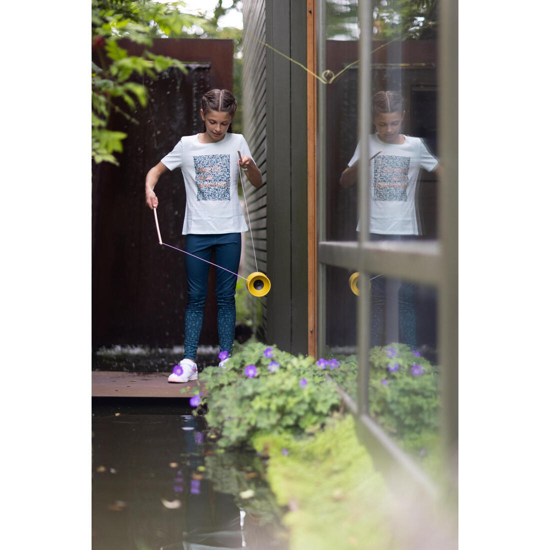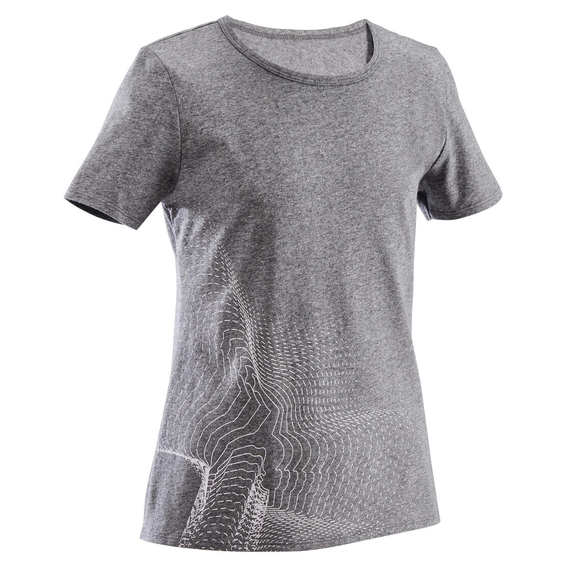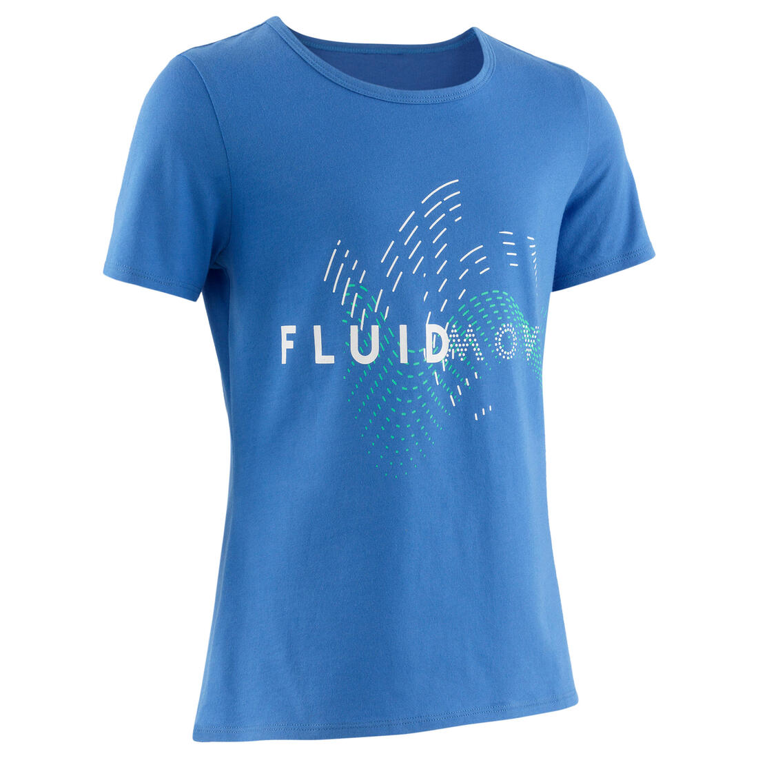 Notre mannequin porte le t-shirt manche courte 100 en taille 10-11 ans, elle mesure 1m43.
