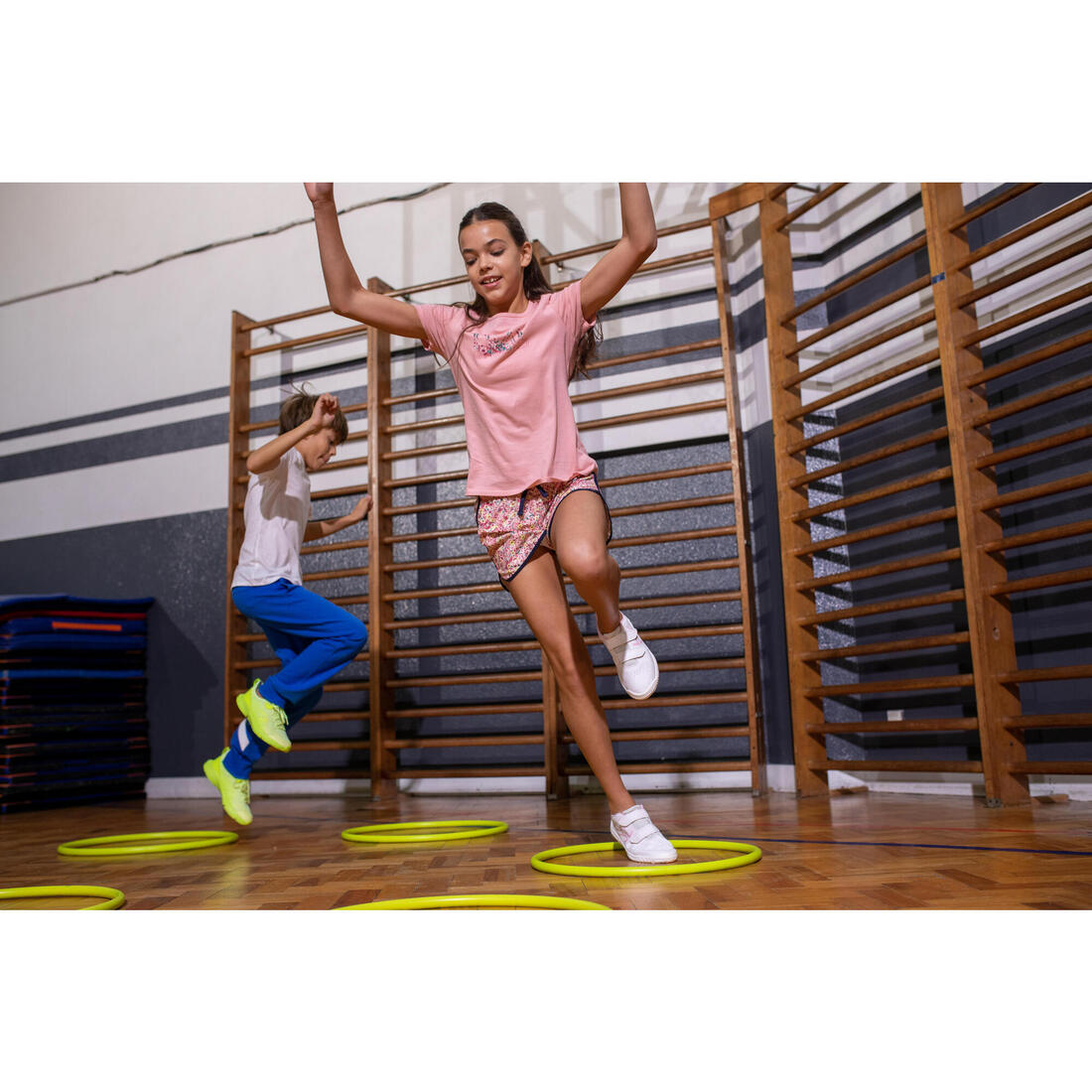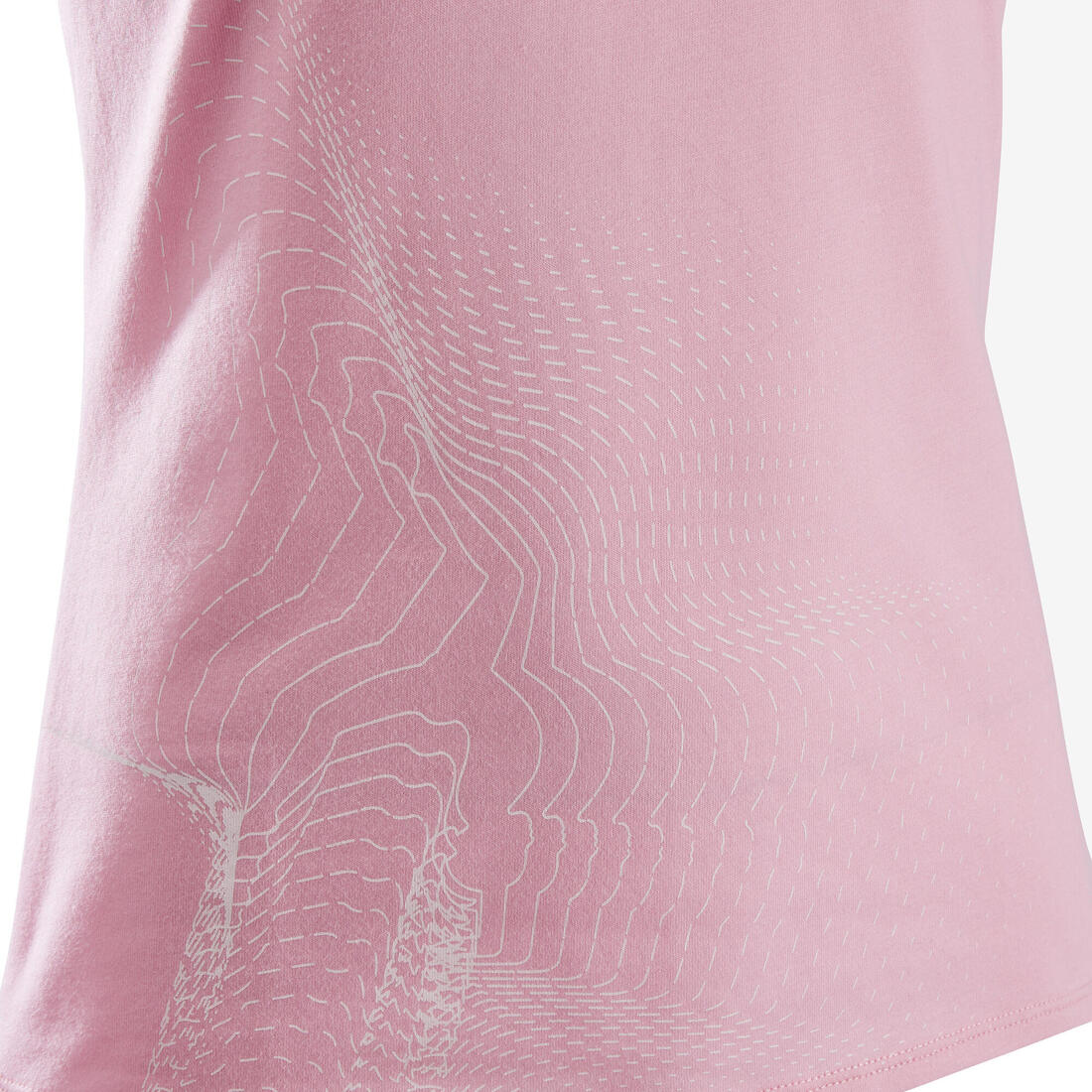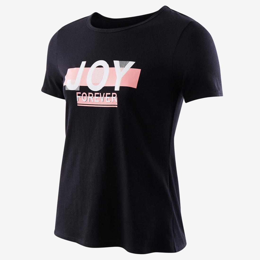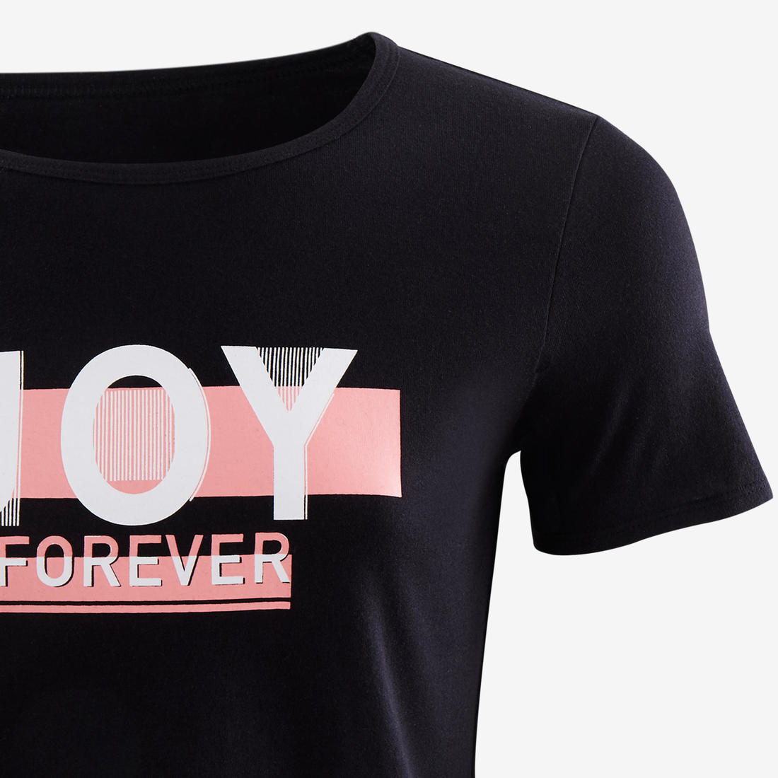 Notre mannequin porte le t-shirt manche courte 100 en taille 10-11 ans, elle mesure 1m43.