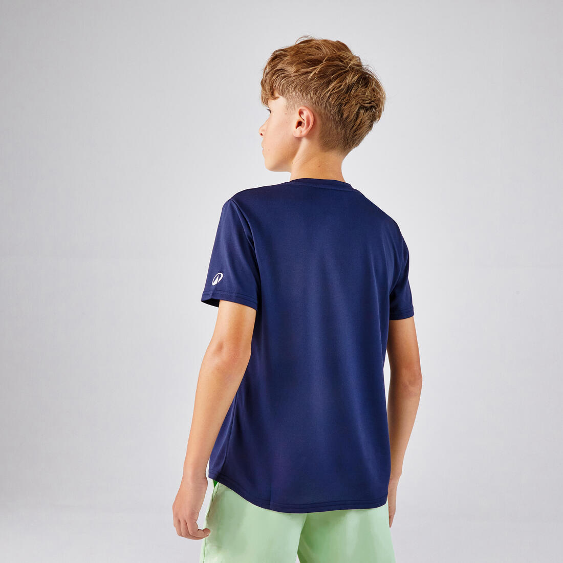 Ce t.shirt de tennis enfant offre un confort optimal. Vous apprécierez son tissu léger et respirant. Son style et son graphisme tennis séduiront votre futur champion.