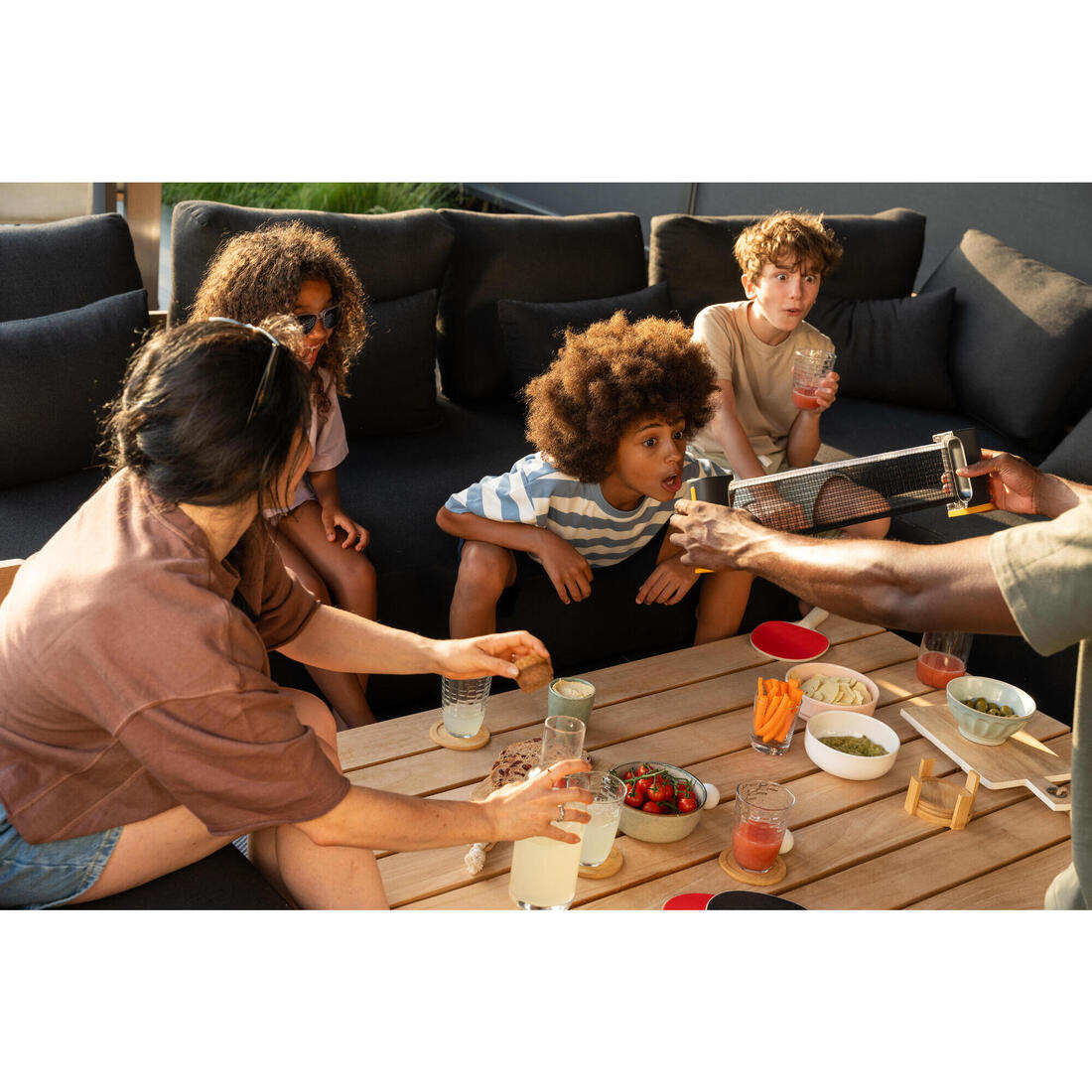 Débutez au ping pong facilement grâce à la raquette PPR 100. Résistante aux chocs, aux intempéries et aux UV, laissez-la en extérieur sans souci. Elle vous attendra pour votre prochaine partie !