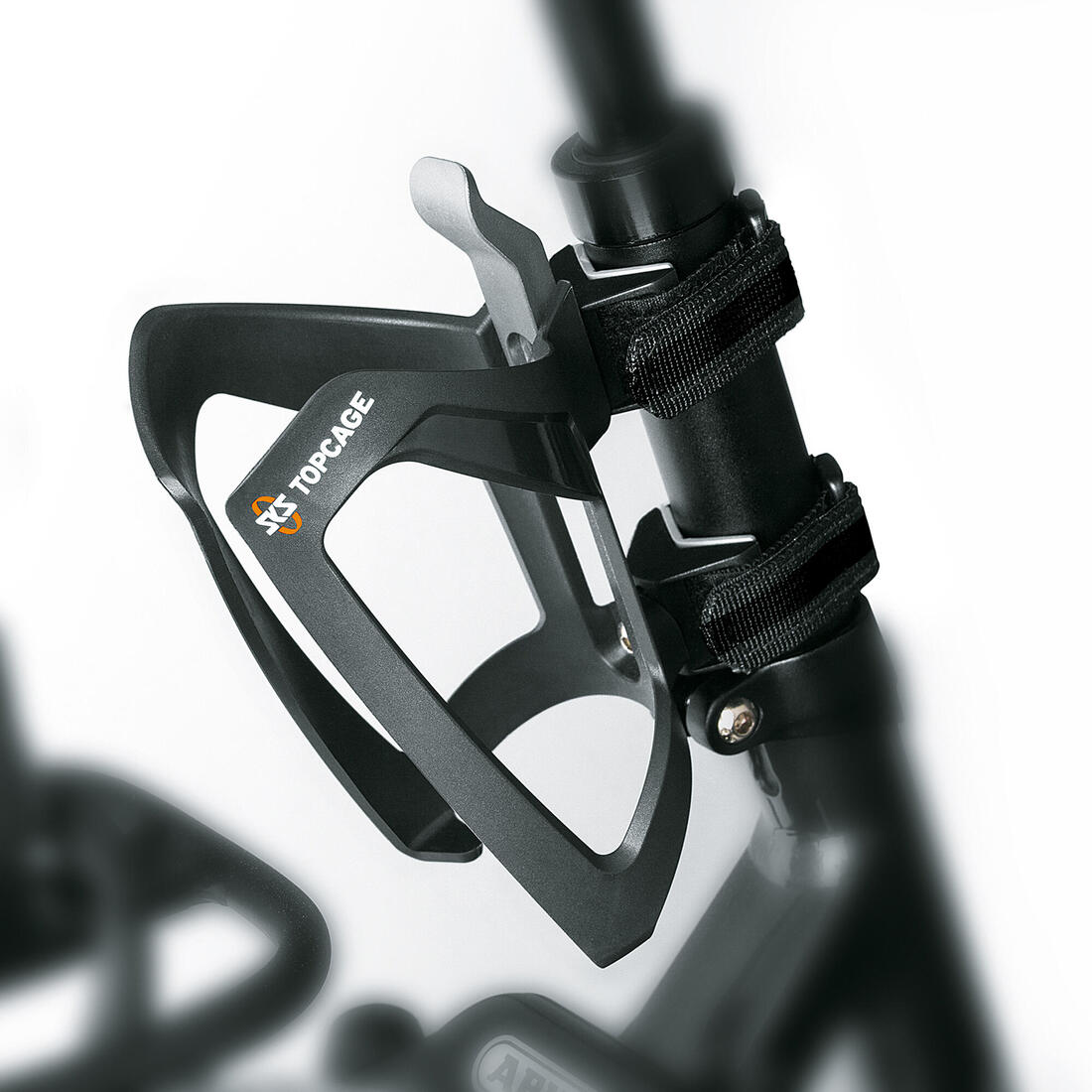Accessoire pratique qui permet d'installer un porte-bidon ou support pompe sur un cadre qui n'est pas équipé de vis porte-bidon ou sur une autre partie du vélo comme la tige de selle ou la fourche.