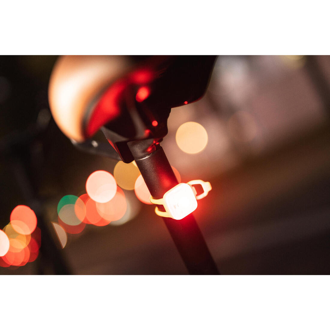 Nos équipes ont développé cet éclairage avant ou arrière à piles pour ETRE VU. Facile à utiliser avec ces 2 modes, 2 couleurs et sa fixation élastique.