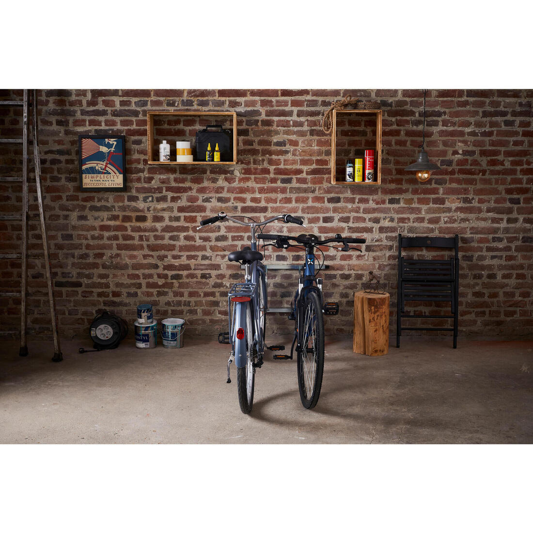 Notre équipe de conception a développé ce ratelier pour vous permettre de ranger très simplement 2 vélos, au sol ou au mur.