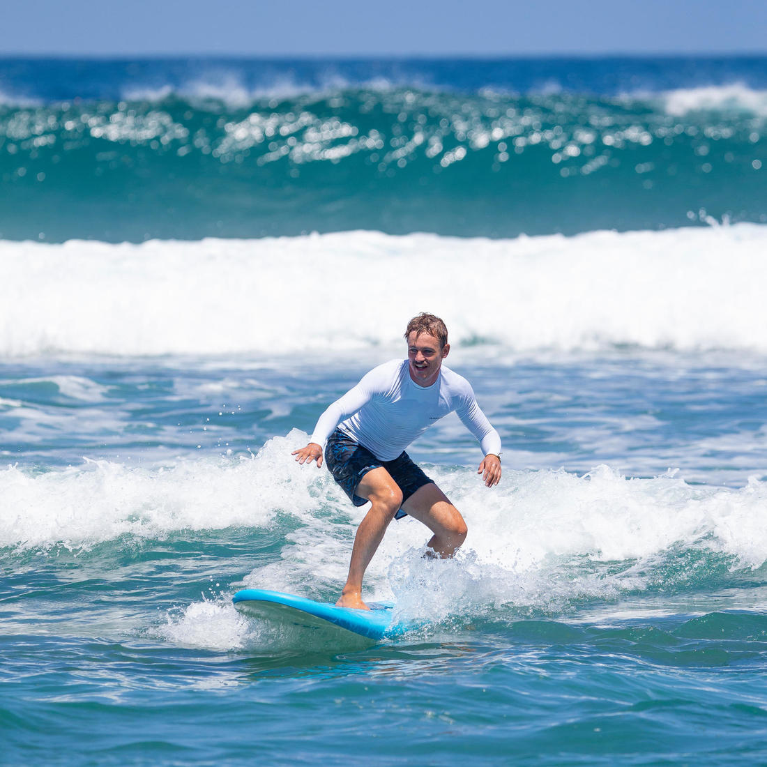 Notre équipe de concepteurs a développé un tee-shirt anti UV particulièrement adapté à la pratique du surf en eau chaude, pour des sessions de moins d'une heure