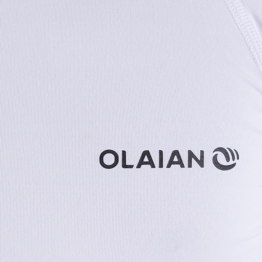 Le textile qui compose ce produit anti-UV OLAIAN permet de bloquer au minimum 98 % des UVB et 95 % des UVA (UPF 50+). C'est la garantie d'une protection efficace contre le soleil. Il peut être utilisé dans et hors de l'eau pour la pratique des sports nautiques et aquatiques. La filtration des UV est générée par la densité des fibres textiles, cette protection dure dans le temps, même après lavage. Attention, l'élastane contenue dans la fibre peut se détériorer dans l'eau chlorée.