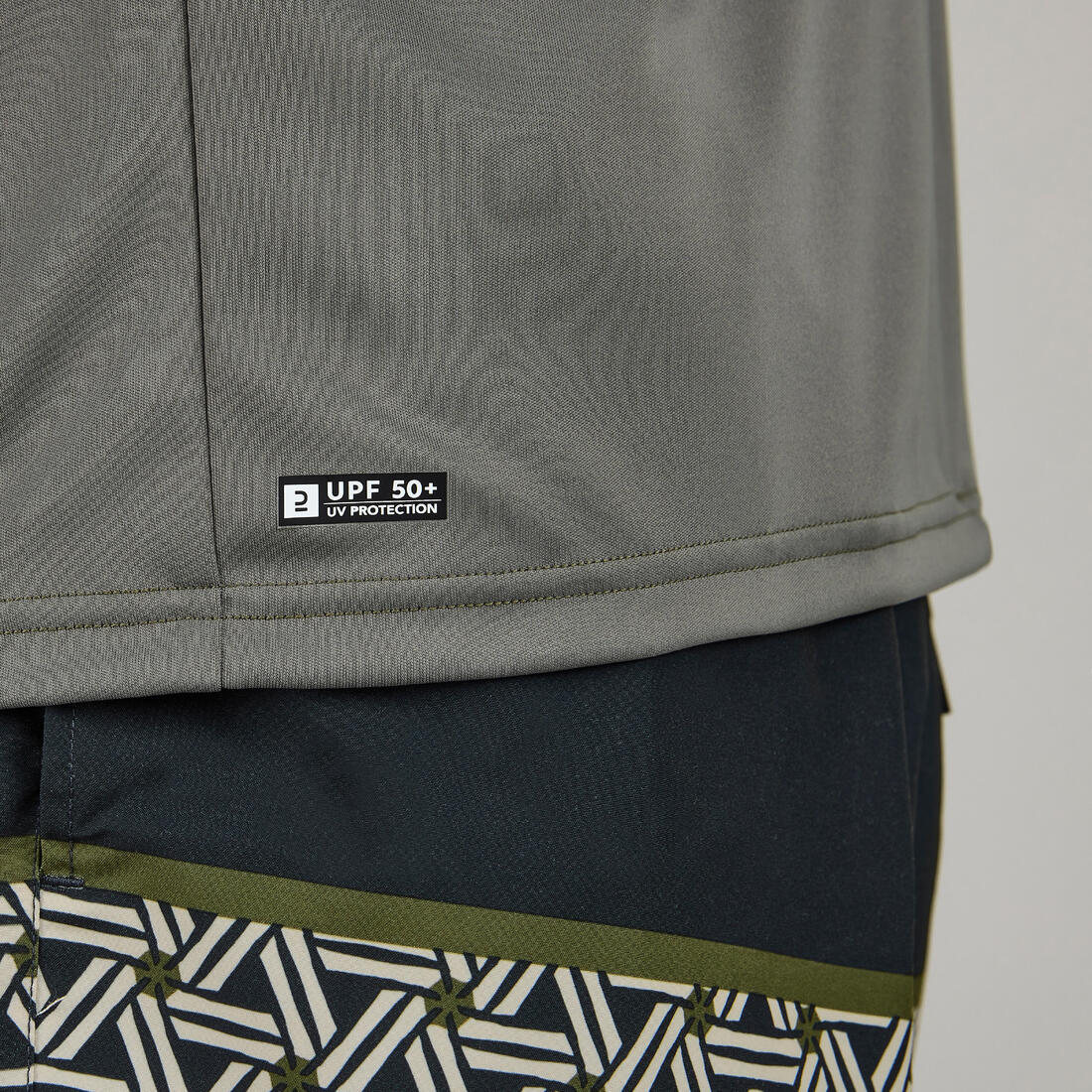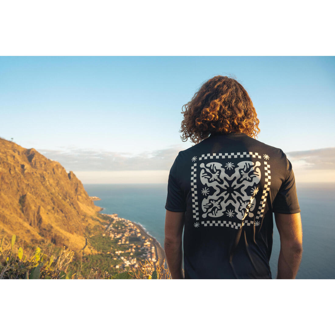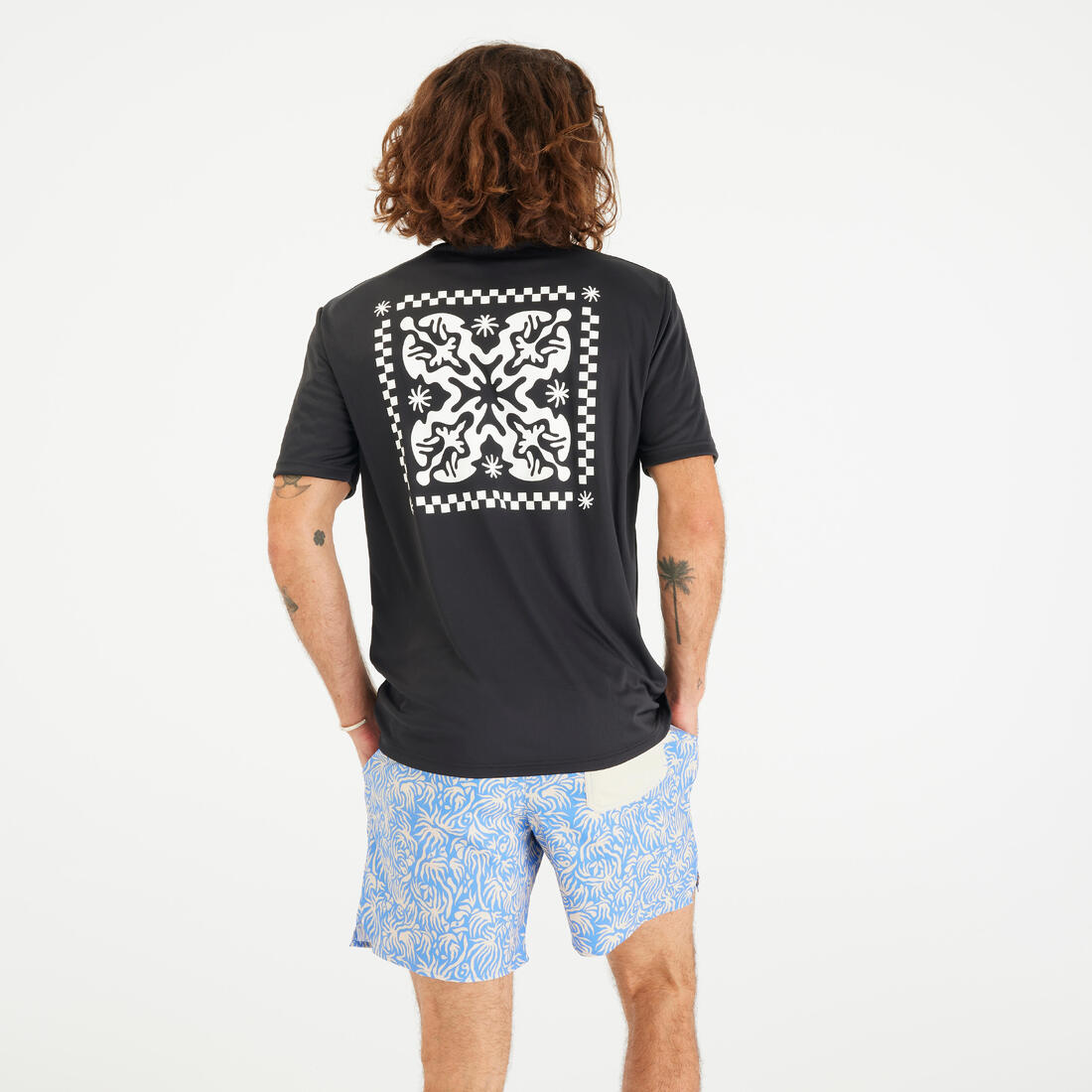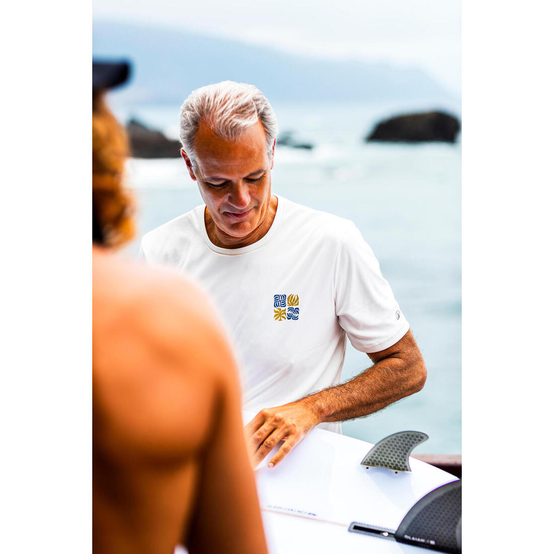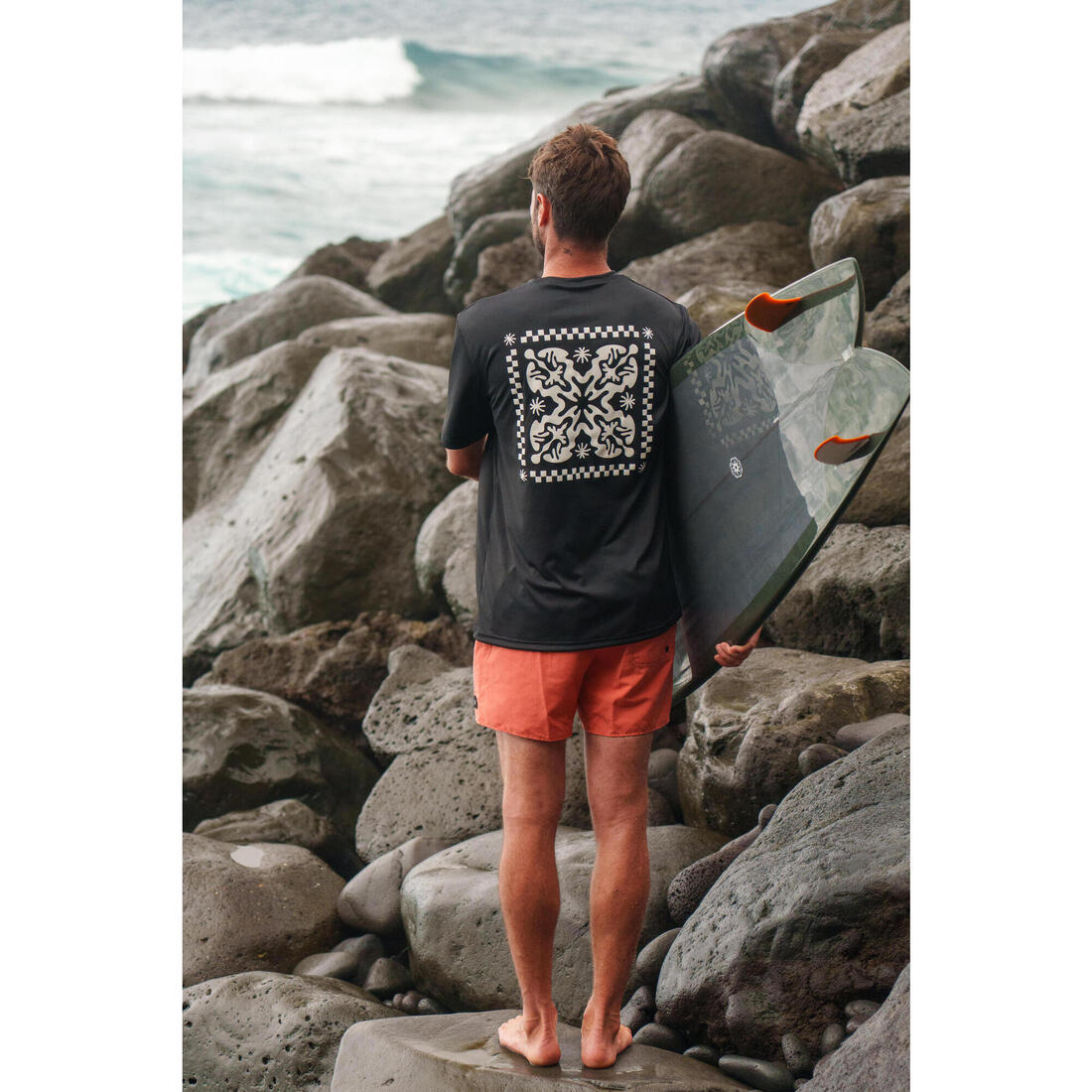 T-shirt anti-UV homme manches courtes pour protéger du soleil, même dans l'eau, et limiter les irritations au contact de la planche. Coupe ample pour un enfilage facile.