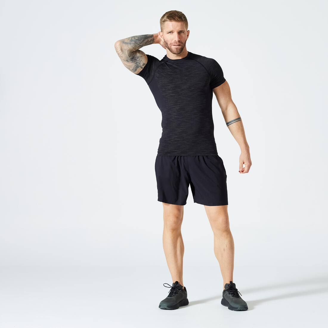 Ce Tee shirt mettra en valeur vos muscles grâce à une coupe très près du corps et vous permettra d'être à l'aise dans tous vos exercices grâce à sa matière légère, extensible et "sans couture".