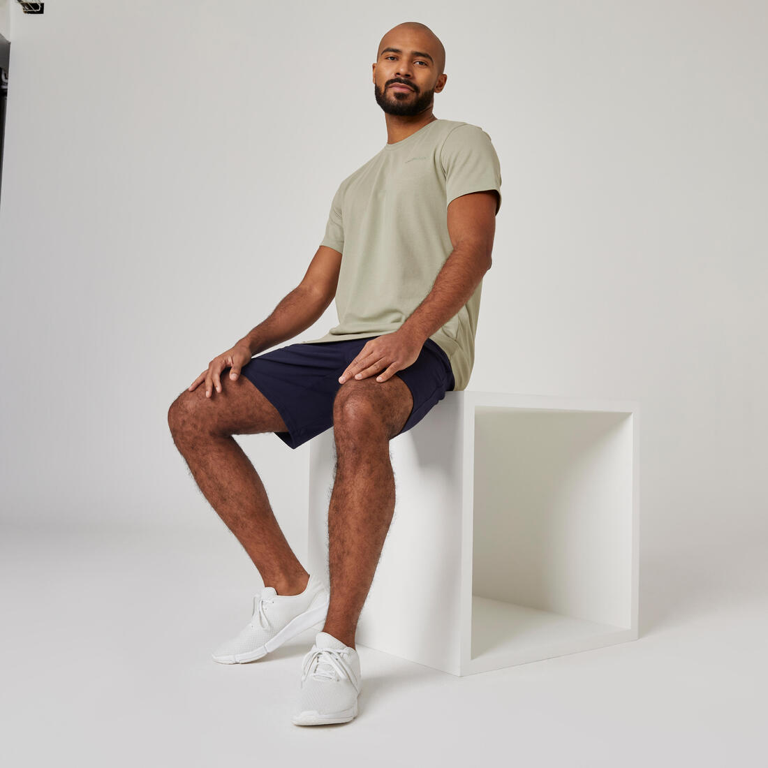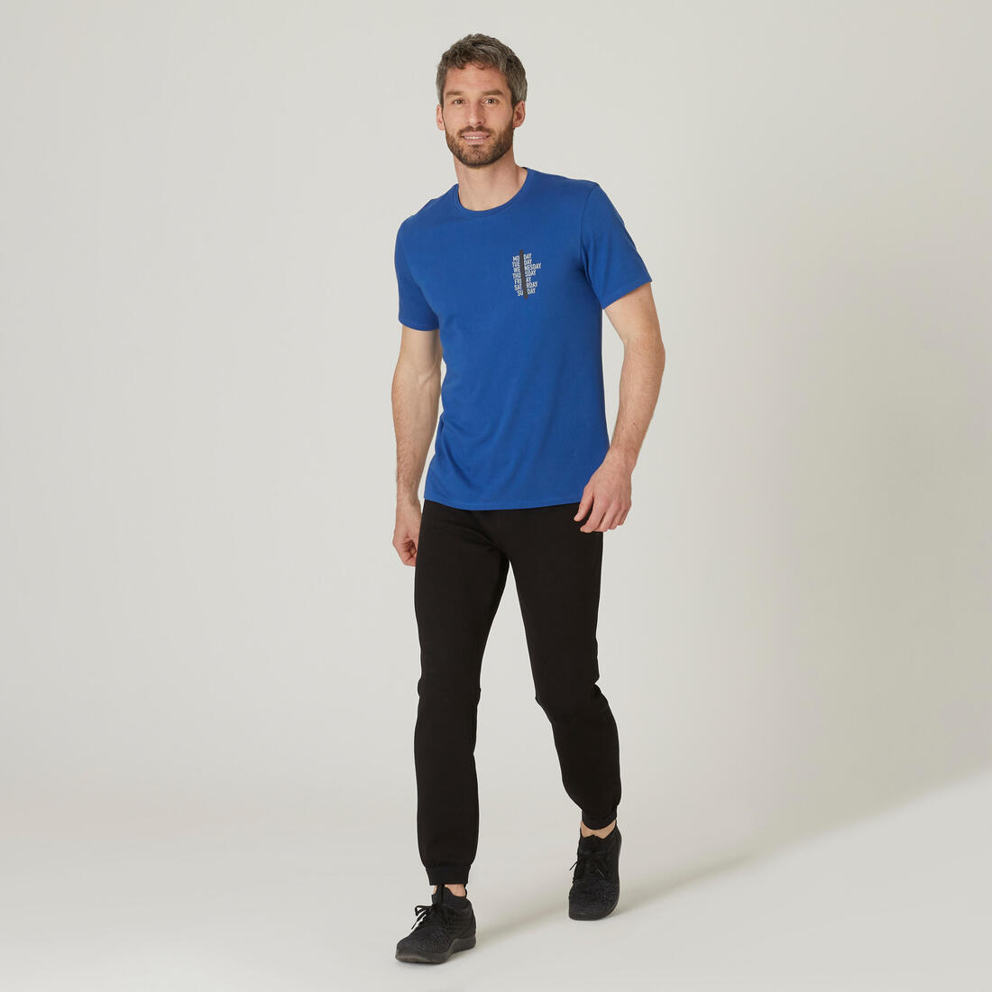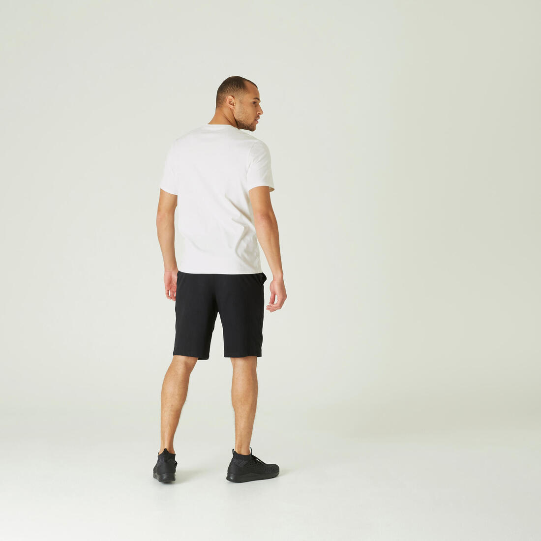 T-shirt fitness manches courtes slim coton col rond homme blanc a imprimé