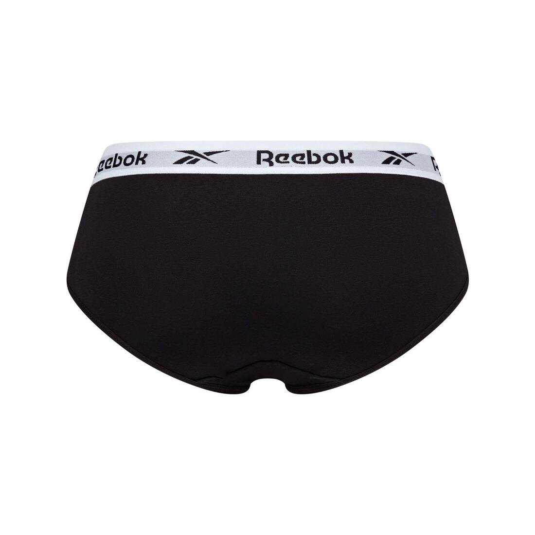 Lot de 3 culottes Reebok pour femme en noir/blanc/gris. Coton confortable avec ceinture en microfibre.