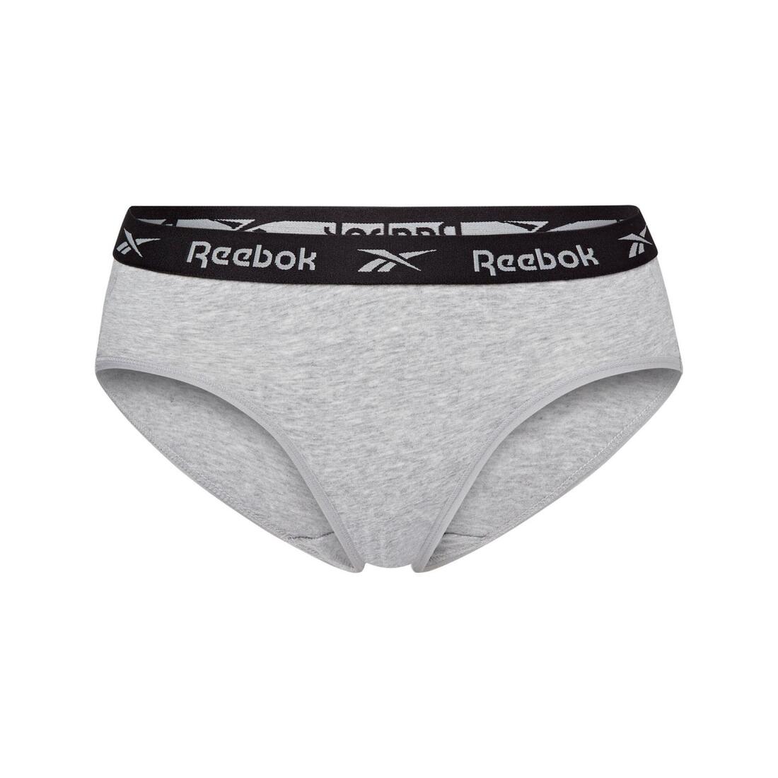 Lot de 3 culottes Reebok pour femme en noir/blanc/gris. Coton confortable avec ceinture en microfibre.