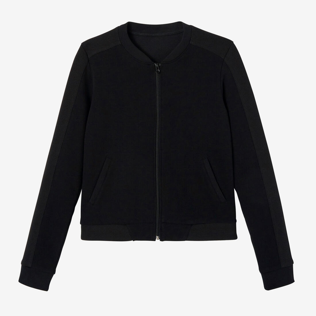 Avec sa coupe courte, typée bombers, ce sweat commence très fort... Mais c'était sans compter sur ses jolies finitions qui lui permettent de bien se poser sur vos hanches : on vous a déjà dit que cela vous allait à merveille ? Maintenant, oui. Ah, et on ne vous a pas encore parlé de sa composition en bi-matière : idéale pour jongler entre les textures et avec les styles... En résumé, vous avez (vraiment) de quoi vous amuser !