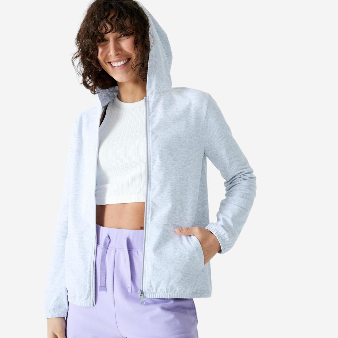 Ce sweat zippé léger est idéal pour les échauffements de début de séance de fitness.