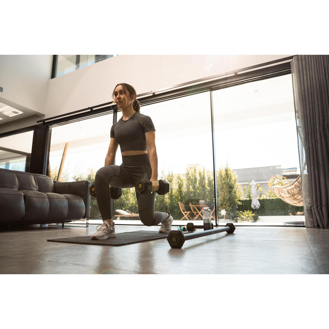 On vous le dit : le design de ce crop-top est au top sur la tendance. Grâce à sa matière extensible très technique, votre silhouette est sublimée tout en assurant un max de confort dans les mouvements. Pour encore plus de style, associez ce T-shirt de fitness avec un legging à taille haute de la même gamme technique 900.