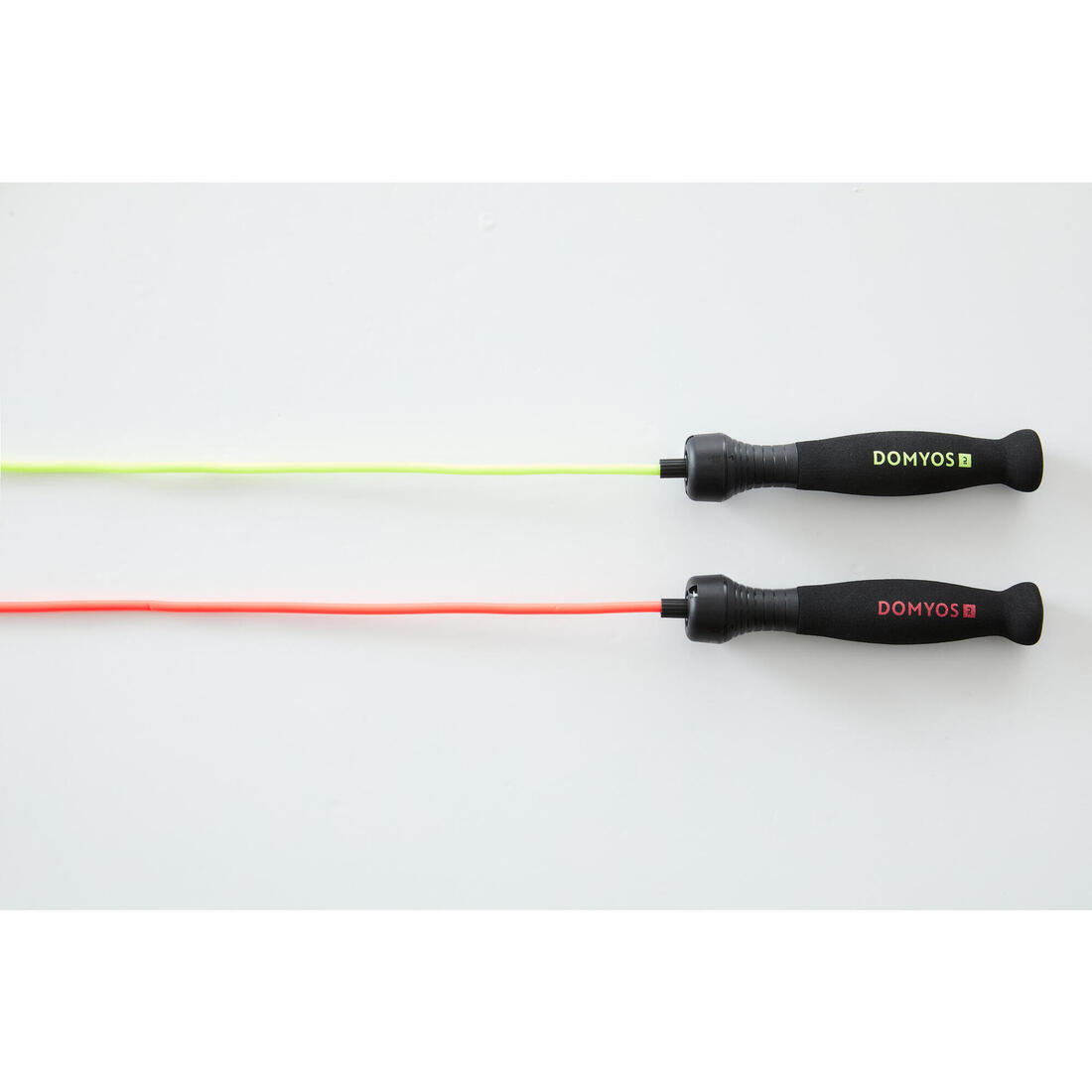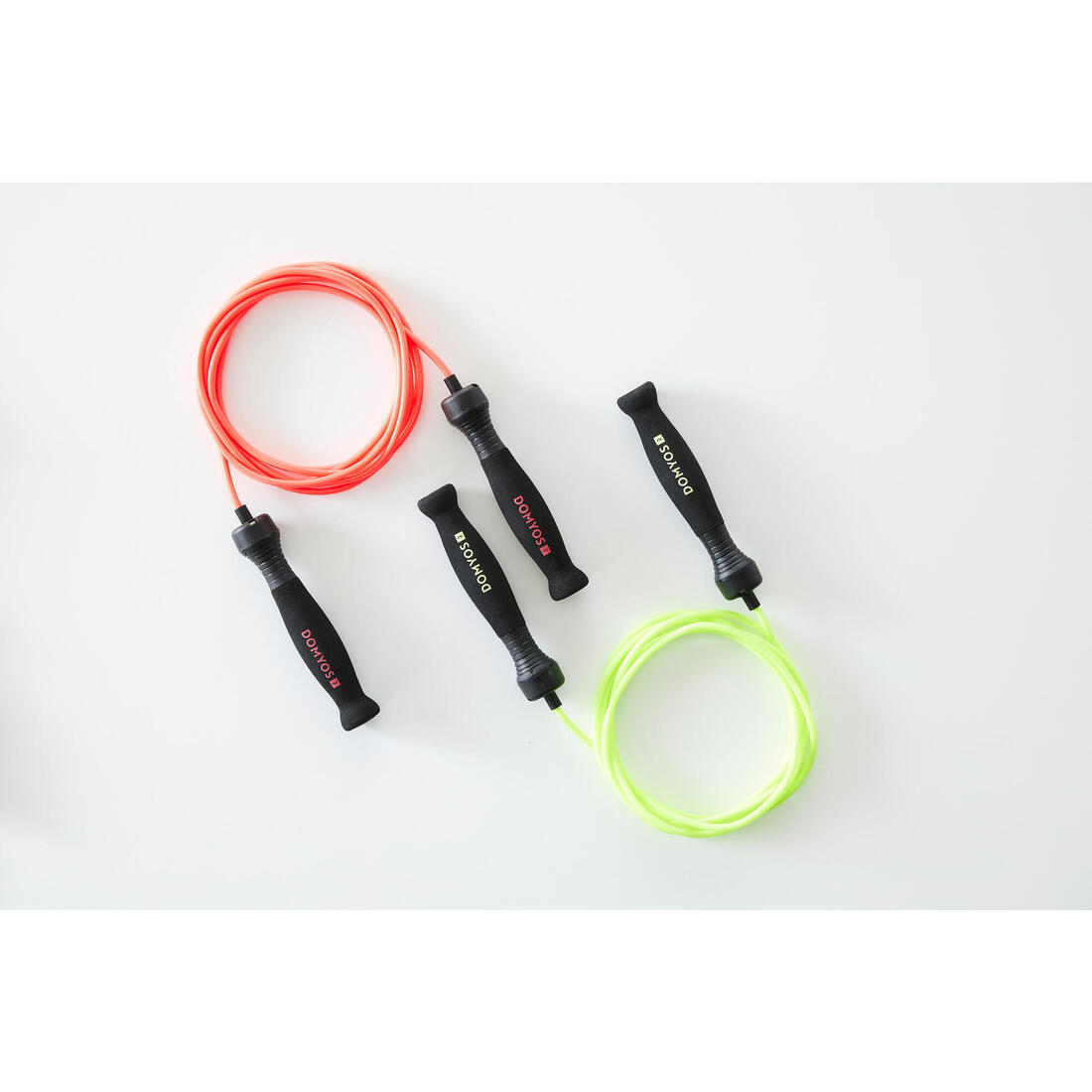 Pour une pratique régulière à intensité modérée, la CORDE A SAUTER 500 est le partenaire de fitness idéal pour brûler des calories. Facile à transporter, elle se pratique partout et tout le temps.