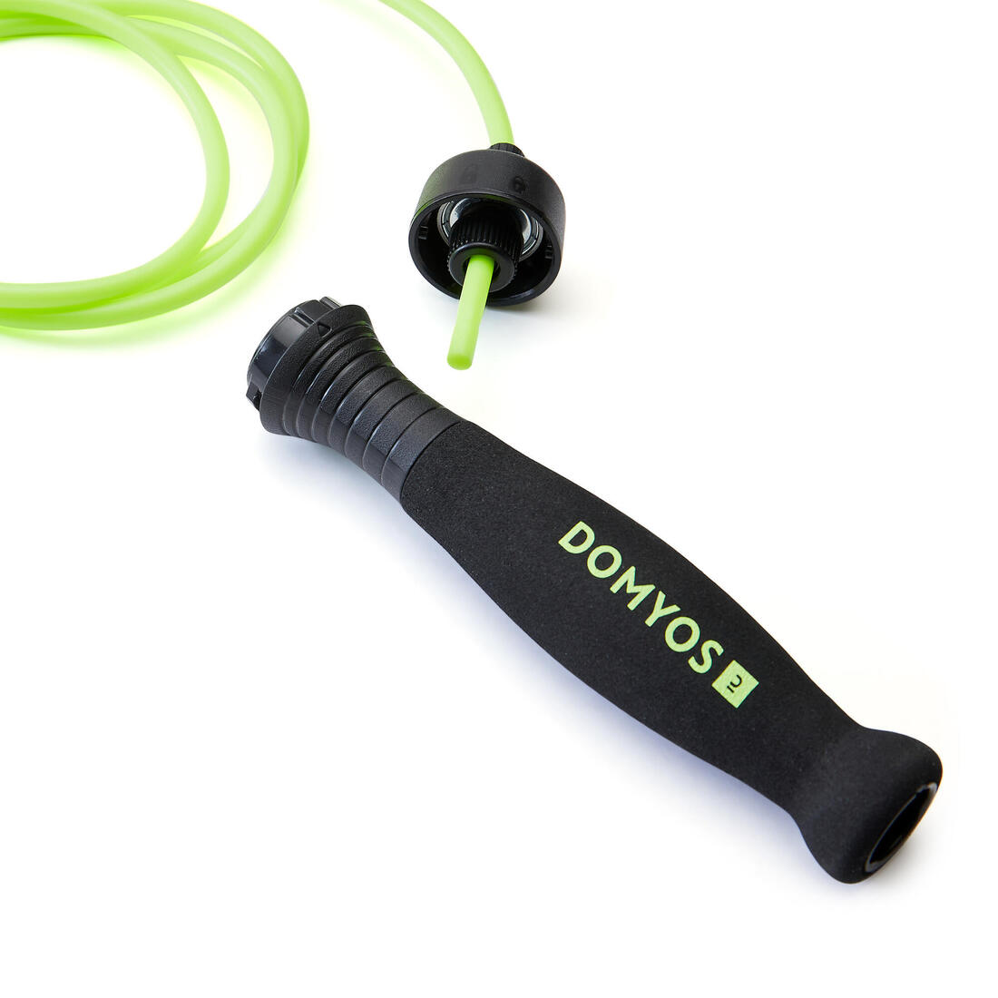 La CORDE A SAUTER 500 a été conçue pour permettre une bonne préhension de la poignée grâce à son ergonomie. Le revêtement en mousse apporte plus de confort.